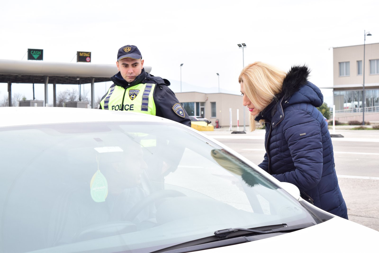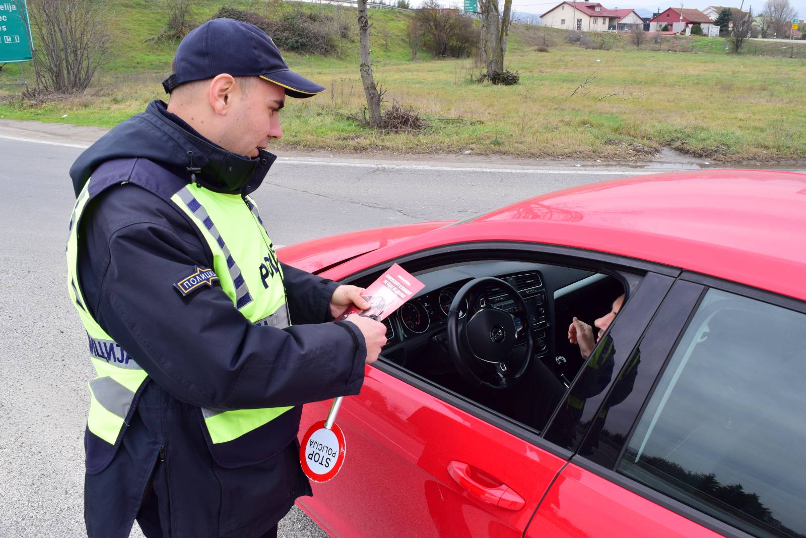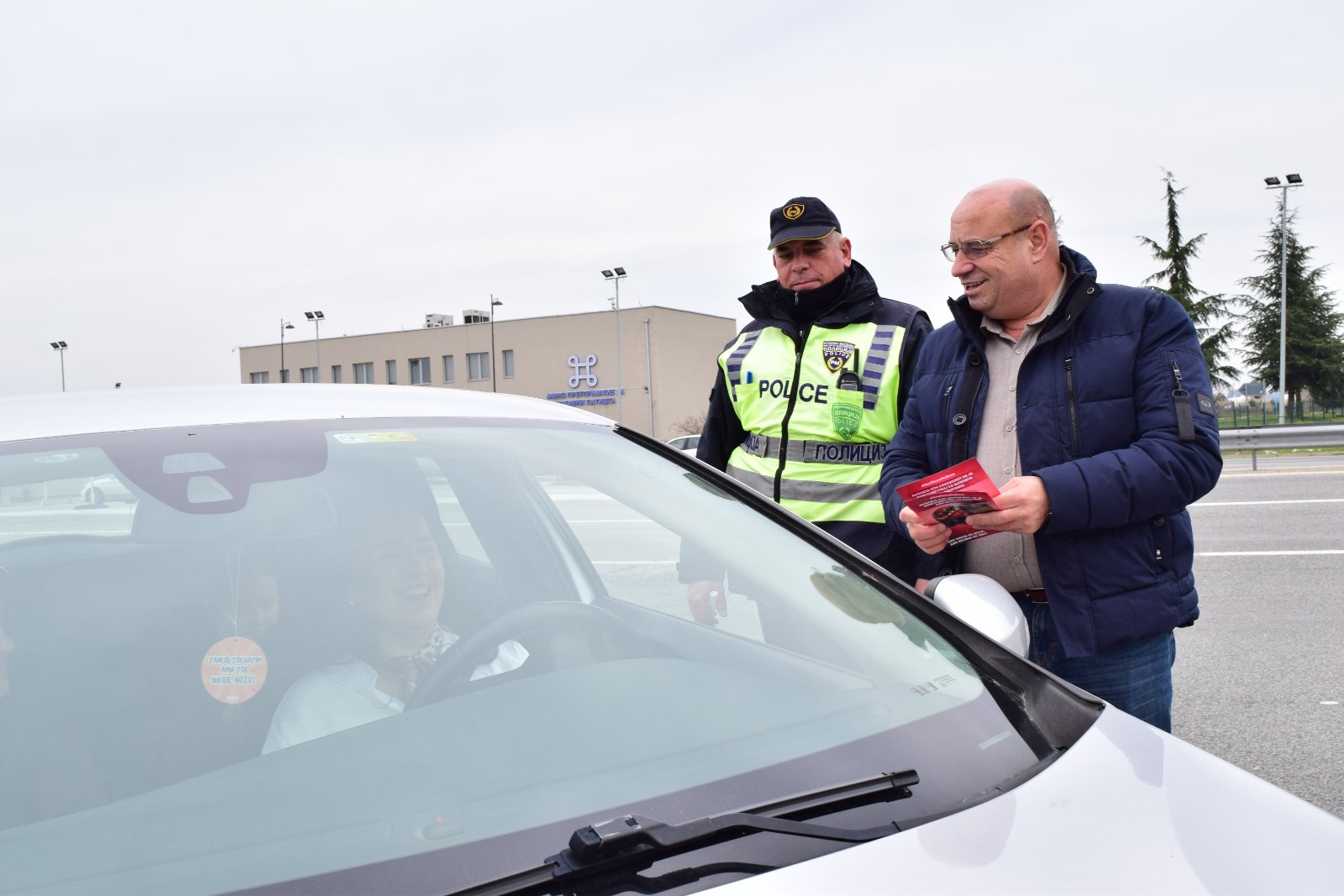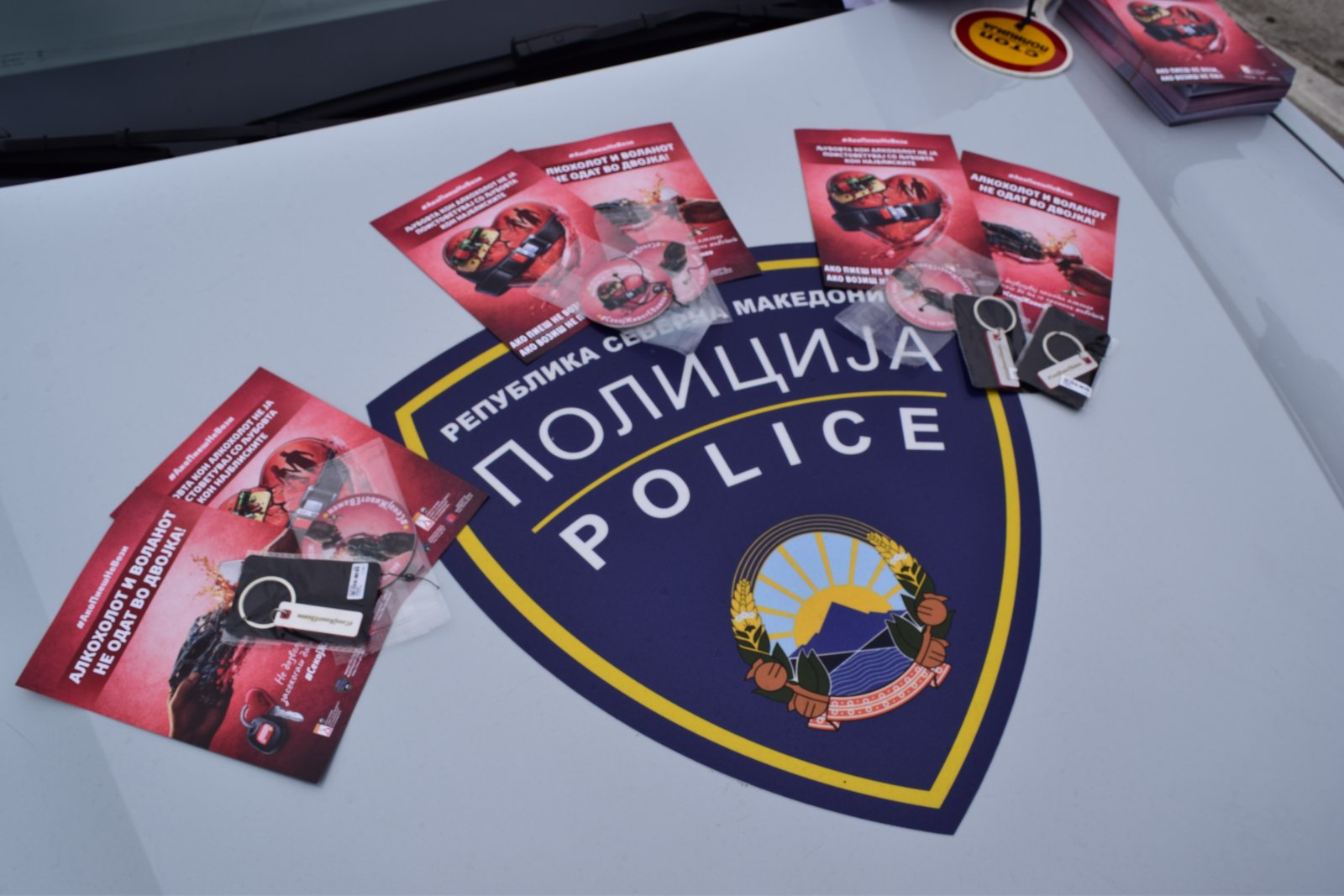 Today (14.02.2026), at the Petrovec toll station on the Skopje–Veles motorway, as part of the celebration of the holidays Saint Trifun and Saint Valentine, the Mobile Unit of the Traffic Affairs Sector, in cooperation with the Republic Council for Road Traffic Safety, carried out a preventive and educational campaign titled “Alcohol and the Steering Wheel Don’t Mix”.