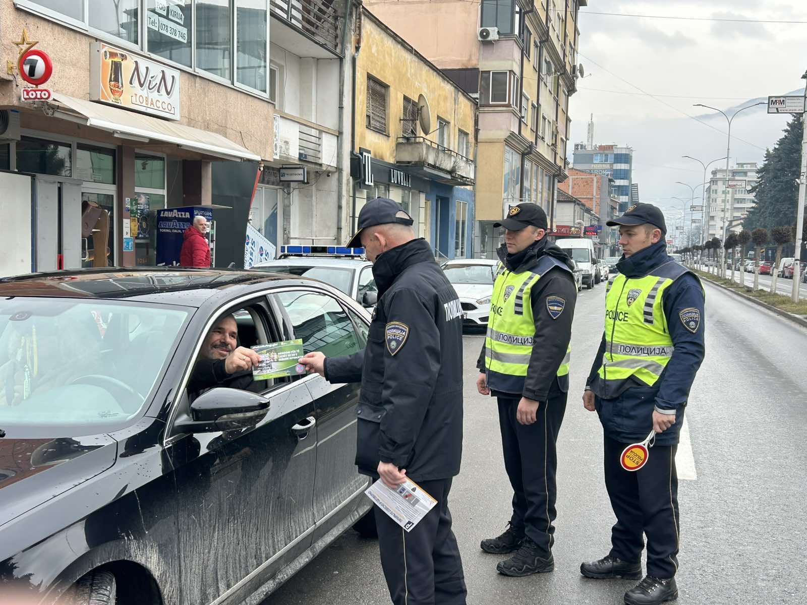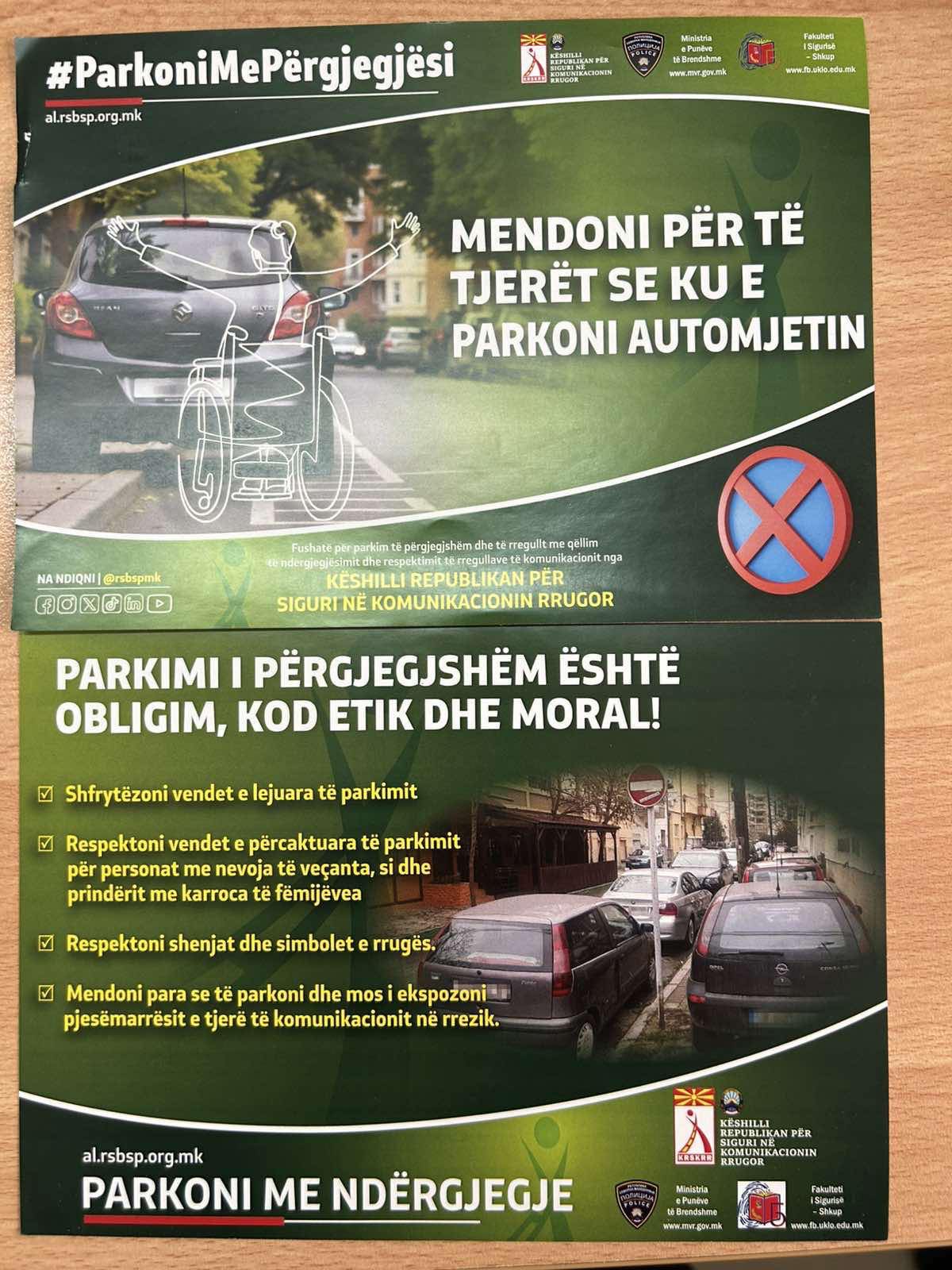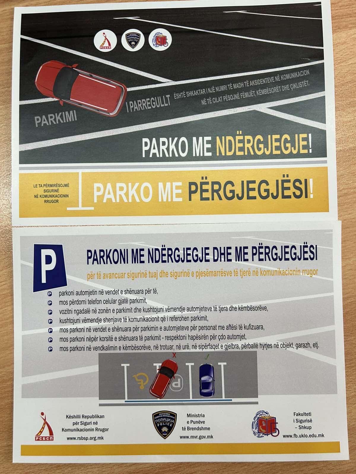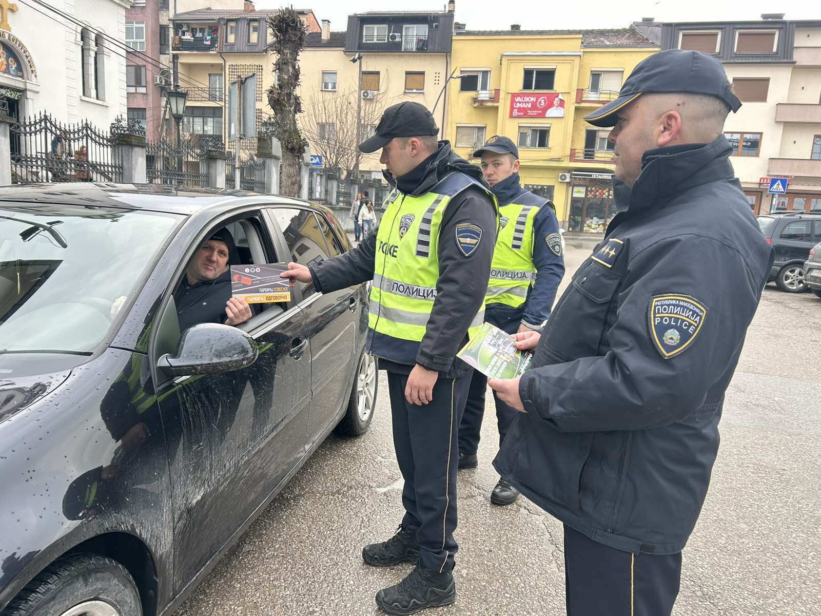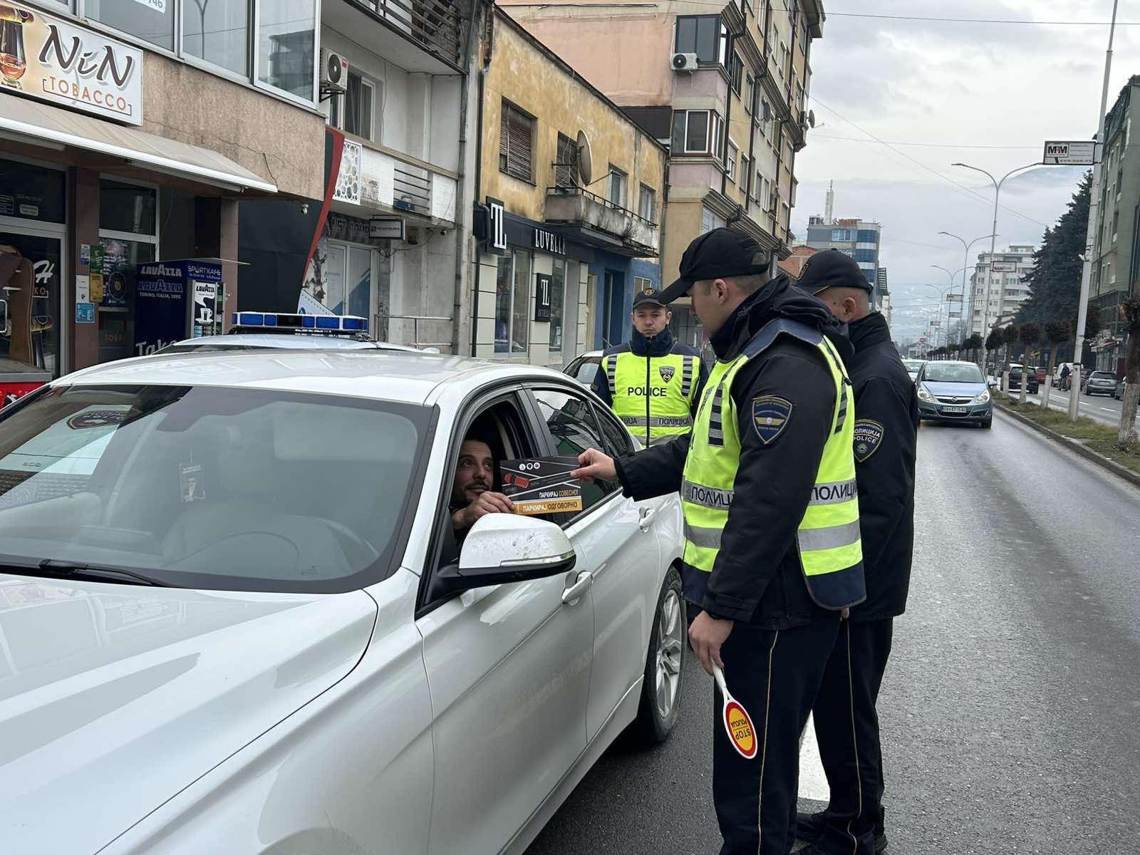 As part of comprehensive campaigns aimed at improving traffic culture, today (25 January), in the area of the Tetovo Sector for Internal Affairs and the Gostivar Police Station, specifically at locations in the central urban area of Gostivar, the Prevention Department of SIA Tetovo, in cooperation with police officers from the Gostivar Road Traffic Safety Police Unit, carried out a preventive and educational activity under the slogan “Park Conscientiously – Park Responsibly”.