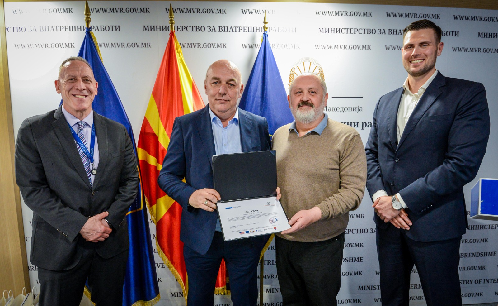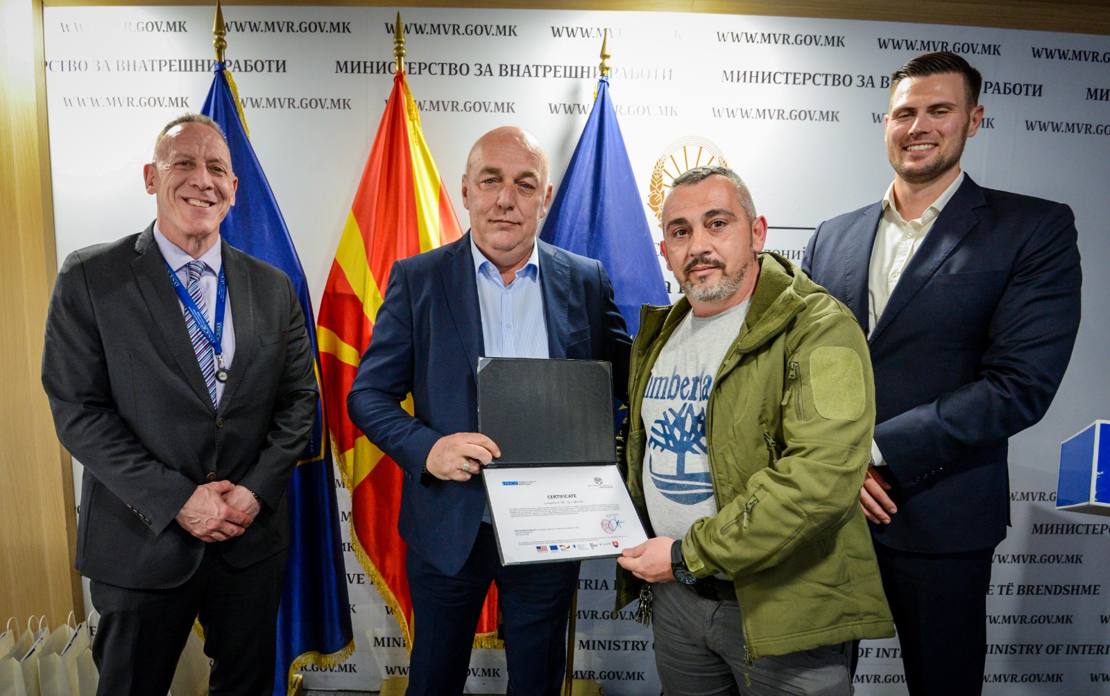 Вчера, (11.03.2026) во просториите на Министерството за внатрешни работи од страна на Претседателот на Националната комисија за мало и лесно оружје Горанче Савовски и Шефот на Одделот за сигурност и поддршка на заедниците при Мисијата на ОБСЕ Едвард Андерсон беа доделени сертификати на учесниците на Сертифицирана програма за обука за неутрализација и деактивација на мало и лесно оружје.