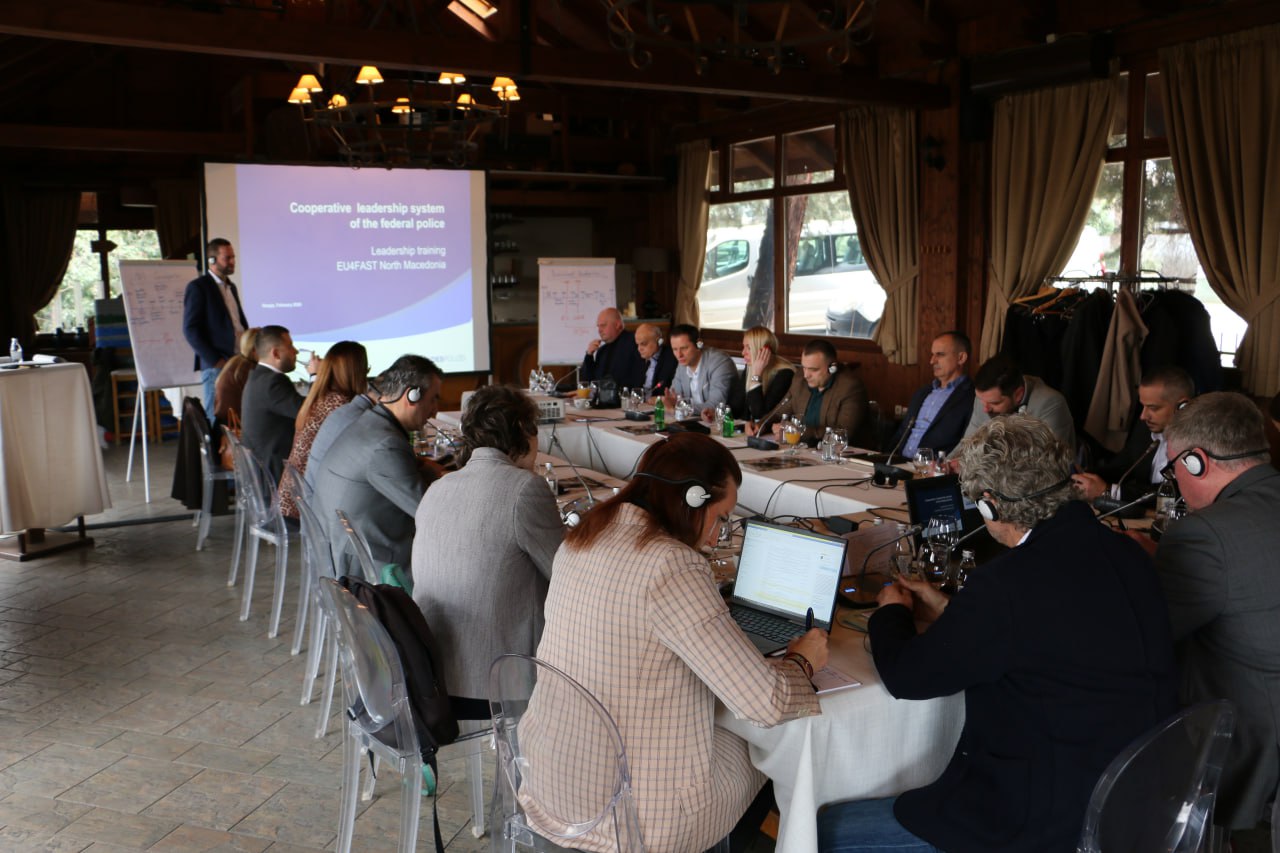 Во периодот од 23.02 до 27.02.2026 година се реализира четиридневна обука за лидерство, во организација на Германската сојузна полиција (BPOL), во соработка со Регионалната канцеларија во Хановер, во рамки на проектот „Поддршка од ЕУ за зајакнување на борбата против криумчарењето мигранти и трговијата со луѓе на Западниот Балкан“ (EU4FAST). Обуката е насочена кон унапредување на лидерските и менаџерските вештини и нивно прилагодување на локалните потреби. На настанот учествуваат раководни службеници од Министерството за внатрешни работи и од Бирото за јавна безбедност, меѓу кои и директорот на Бирото за јавна безбедност, Александар Јанев. Во текот на обуката, акцентот е ставен на кооперативното управување, процесите на планирање и донесување одлуки, како и на понатамошниот развој на кооперативниот лидерски стил 2.0. Покрај стручните дискусии, учесниците имаат можност за размена на искуства и практична примена на стекнатите знаења во секојдневното работење. Обуката претставува значаен придонес кон зајакнување на професионалните капацитети и унапредување на културата на кооперативно и проактивно лидерство, со цел поефикасно функционирање и зајакнување на безбедноста на институциите.