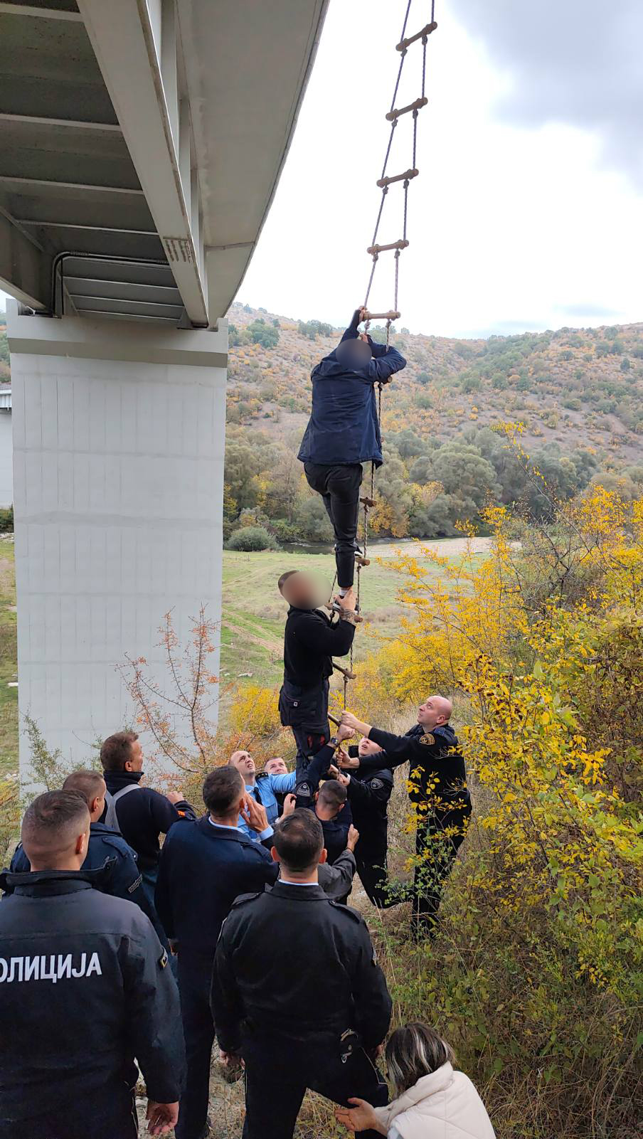Денеска (21.10.2025) во 10:40 часот, по претходна пријава за лице кое сака да се самоубие, полициски службеници од СВР Куманово заедно со екипа од Територијалната противпожарна единица Куманово спасија 34-годишно лице од кумановско, кое се обидело да се фрли од „Искрин мост“ во Куманово.