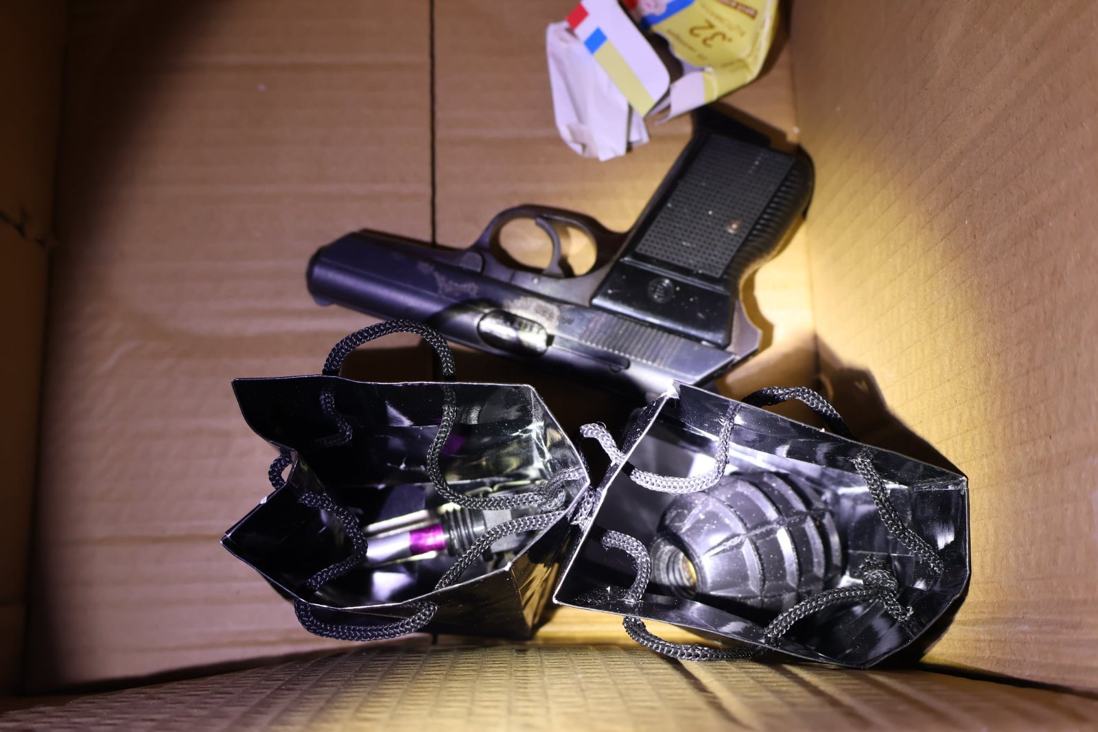На 31.10.2025, полициски службеници од криминалистичката полиција при СВР Охрид го лишија од слобода Г.М.(48) од селото Подмољје, охридско. При претрес во поранешен угостителски објект во селото Мешеишта, општина Дебрца, кој го користел Г.М., извршен со судска нредба, пронајдени и одземени се вкупно 1357 парчиња муниција различен калибар, 488 стебла од растението Канабис, еден сандак со куршуми калибар 7,62 милиметри, два стари револвери, еден пиштол „VZOR“ калибар 7,65 милиметри, две автоматски пушки, еден тромблонски држач, едно тело и една иницијална каписла од рачна бомба, пакување со црна грутчеста материја, ќеса со кафеава прашкаста материја и други предмети кои нелегално ги поседувал.