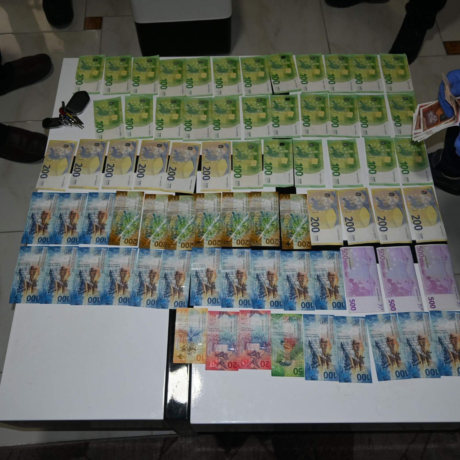 На 28.01.2026 во 06.40 часот, полициски службеници од СВР Тетово – Одделение за недозволена трговија со дрога и оружје ги лишија од слобода И.Ј.(43), С.З.(36), Д.П.(69), Д.П.(65) и С.З.(42), сите од село Брвеница. Извршени се претреси во с. Брвеница, во куќи, помошни простории и патнички возила, а врз основа на претходно издадена судска наредба. При тоа, кај И.Ј. се пронајдени пет паковки со бела прашкаста материја, 52 куршуми од автоматска пушка калибар 7.62, два куршуми од пиштол непознат калибар и една чаура од автоматска пушка. Кај С.З.(36) се пронајдени и одземени 20 куршуми од автоматска пушка калибар 7.62, пиштол и рамка со два куршуми кои ги поседувал без дозвола, како и дигитална вага со остатоци од бела прашкаста материја. Кај Д.П.(69) се пронајдени и одземени пиштол кој го поседувал без дозвола, како и ловен карабин, ловна пушка и пиштол кои ги поседувал со дозвола. Кај Д.П.(65) се пронајдени два списоци и една тетратка со имиња на лица, два компјутери и околу 31640 евра, 3400 швајцарски франци и 56500 денари. Кај С.З.(42) е пронајдена бела прашкаста материја. Тие се задржани во полициска станица за понатамошна постапка, а по целосно документирање на случајот ќе бидат поднесени соодветни поднесоци по член 396 и член 215 од Кривичниот законик.