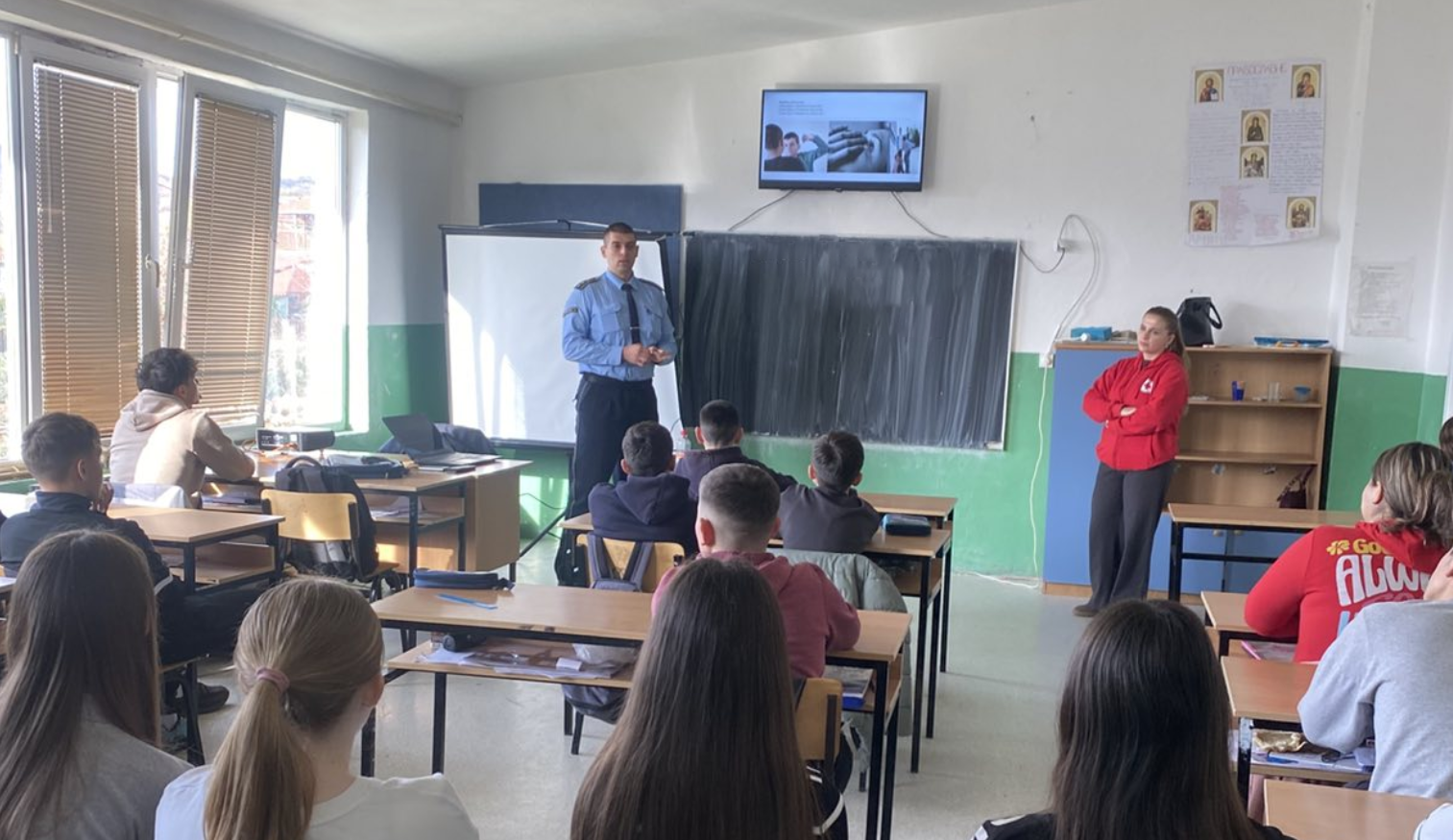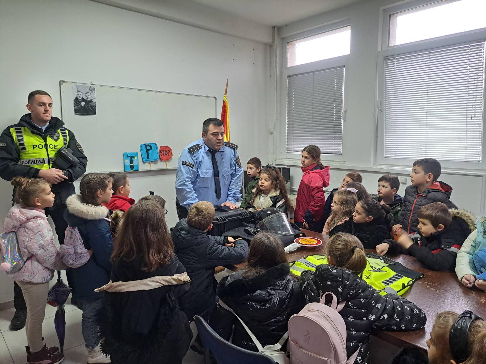 Во текот на вчерашниот ден пак, полициски службеници од ОВР Македонски Брод во соработка со Центарот за социјални работи и здружението „Везилка" -Македонски Брод во средното училиште „Св. Наум Охридски“ во Македонски Брод одржаа трибина на тема: „Да го разбиеме молкот во нашата заедница“, активност што се реализира во рамки на глобалната кампања „16 дена активизам против родово базираното насилство“. Исто така, на покана на полициски службеници од ОВР Ресен, ученици од основното училиште „Славејко Арсов" од с.Подмочани, беа во посета на полициската станица во Ресен каде беа запознаени со основните правила и прописи во сообраќајот.
