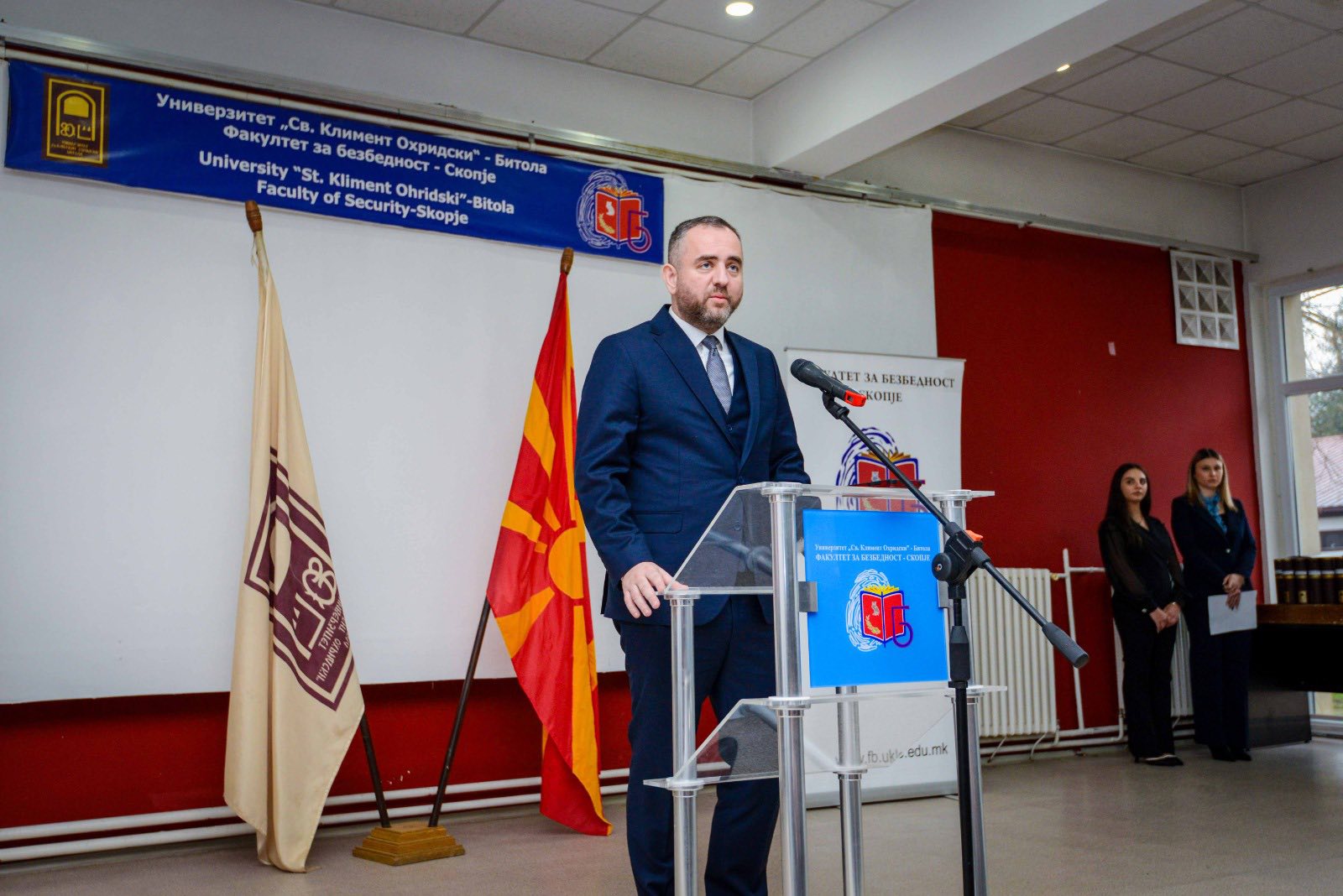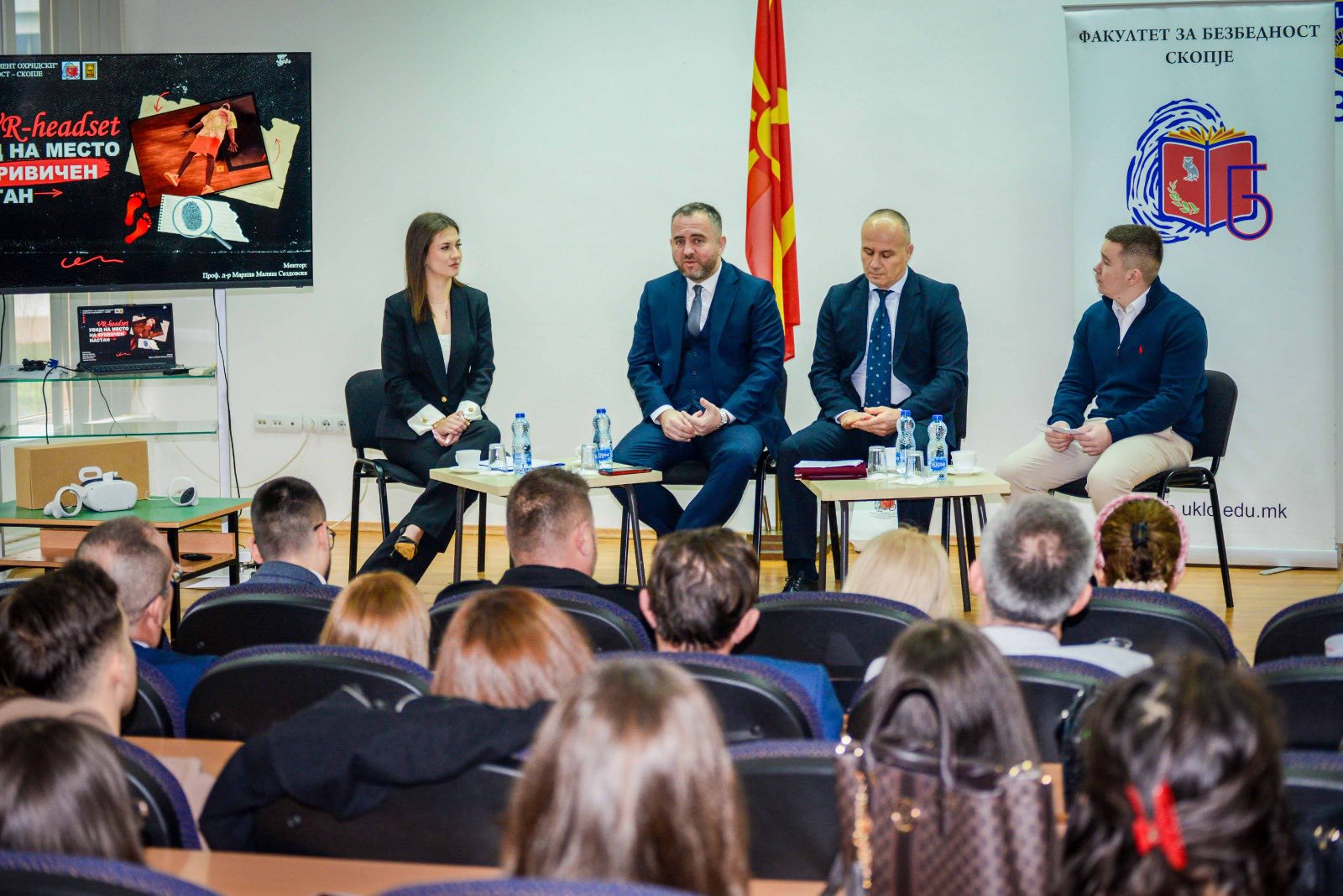 Во разговорот со студентите, министерот се осврна на повеќе актуелни безбедносни прашања, со акцент на имплементацијата на системот „Безбеден град“, враќањето на средното полициско училиште, реформите во Министерството за внатрешни работи, дигитализацијата на услугите и вложувањата во материјално-техничка опрема.