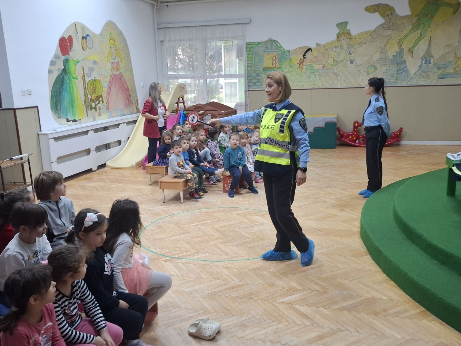 Основна цел на превентивната активност беше да се запознат децата од градинката како да се однесуваат безбедно во сообраќајот, како да препознаат полициски службеник и дека полицијата е тука да помогне и да ги заштити.