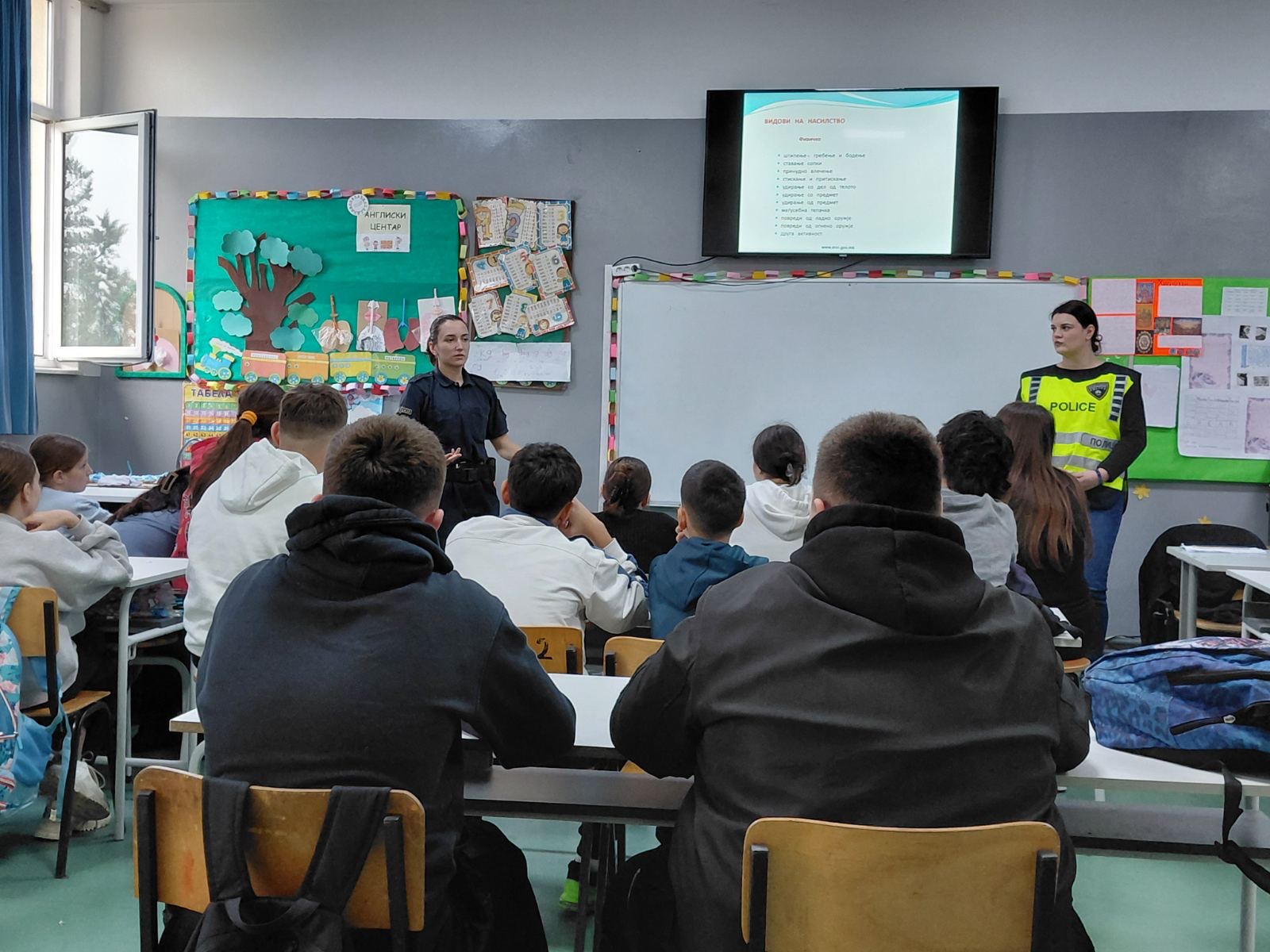 Во рамките на континуираните превентивни активности на Одделението за превенција при СВР Скопје, во текот на вчерашниот ден (05.12.2025) беше реализирана едукативна работилница во ООУ „Јоаким Крчовски“ и ОУ “Ѓорче Петров“ во Скопје на тема „Насилство на спортски натпревари, насилство на социјални мрежи и врсничко насилство“, со цел подобрување на безбедноста на учениците, особено во образовно – воспитните установи, намалување на сите облици на насилство, како и градење на доверба меѓу учениците и полицијата и развивање на меѓусебната соработка.