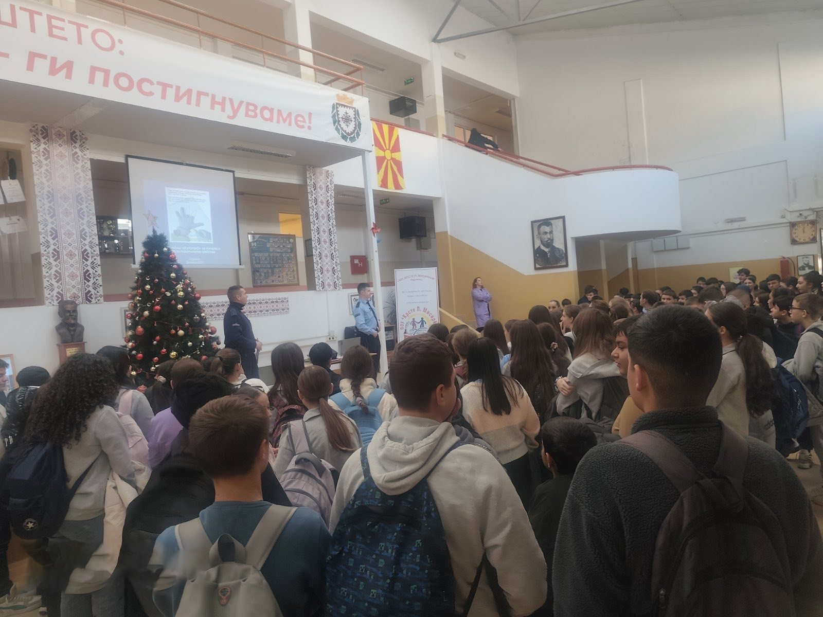 Исто така, вчера (12.12.2025), полициски службеници од СВР Струмица – ОВР Радовиш одржаа едукативно предавање за спречување на употребата и продажбата на пиротехнички средства пред учениците од седмо и деветто одделение во ООУ „Крсте Петков Мисирков“ во Радовиш. Целта на предавањето беше учениците да се запознаат со ризиците и последиците од употребата на пиротехнички средства, како и со законската регулатива со која се санкционира неовластеното набавување, продажба и употреба на истите.