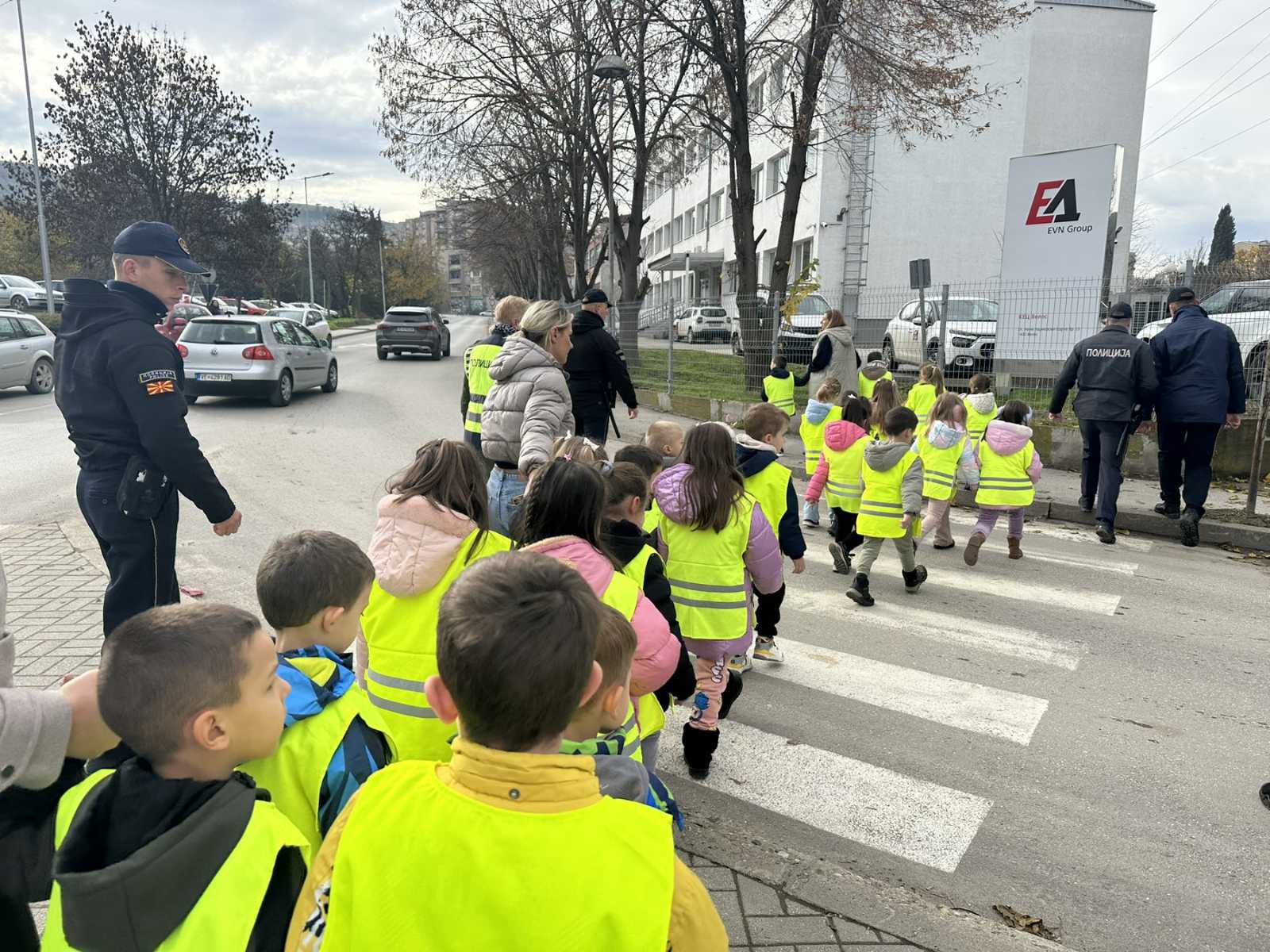 Полициски службеници од Отсекот за превенција при СВР Велес пак, на улица „Алексо Демниевски-Бауман“ во Велес, реализираа теренска настава со децата од детската градинка „Димче Мирчев“ од Велес на тема „Не заборавајте сите сме пешаци“. Децата, како најмали учесници во сообраќајот, се запознаа со важноста и значењето на нивното безбедно движење, во случаи кога се пешаци или пак возачи на велосипеди или тротинети.