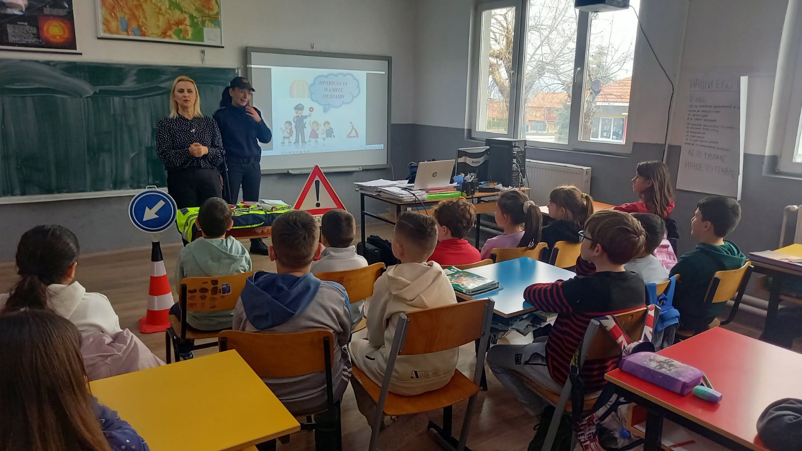 Денеска (05.02.2026) полициски службеници од Отсекот за превенција при СВР Струмица и Полициската станица Струмица реализираа едукативно предавање на тема „Безбедност на малите пешаци“, со учениците од ООУ „Видое Подгорец“ во село Колешино, струмичко. Од страна на полициските службеници преку презентација и едукативни материјали, учениците беа запознаени со основните сообраќајни правила кои им се неопходни за нивно безбедно учество во сообраќајот како пешаци или возачи на велосипед и тротинет. Вакви предавања во текот на вчерашниот ден беа реализирани и со ученици од прво до петто одделение во основните училишта во селата Мокрино и Мокриево, струмичко.