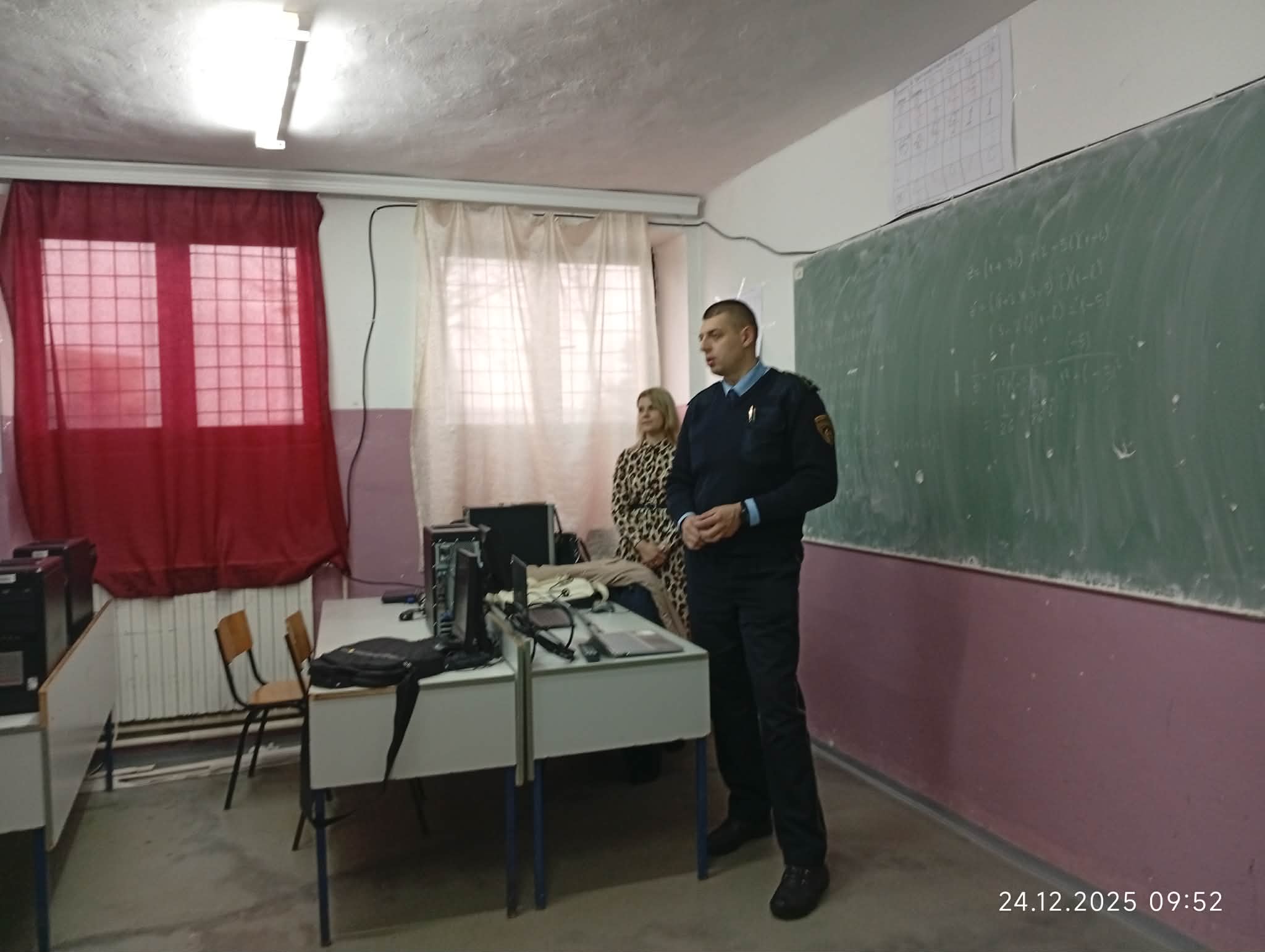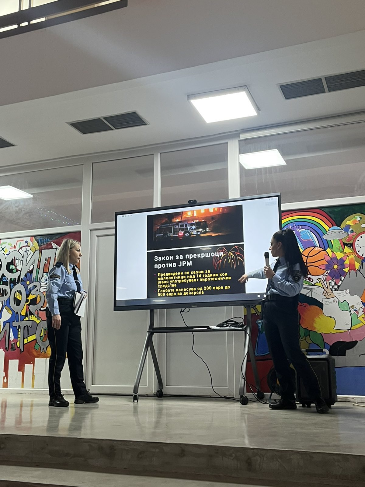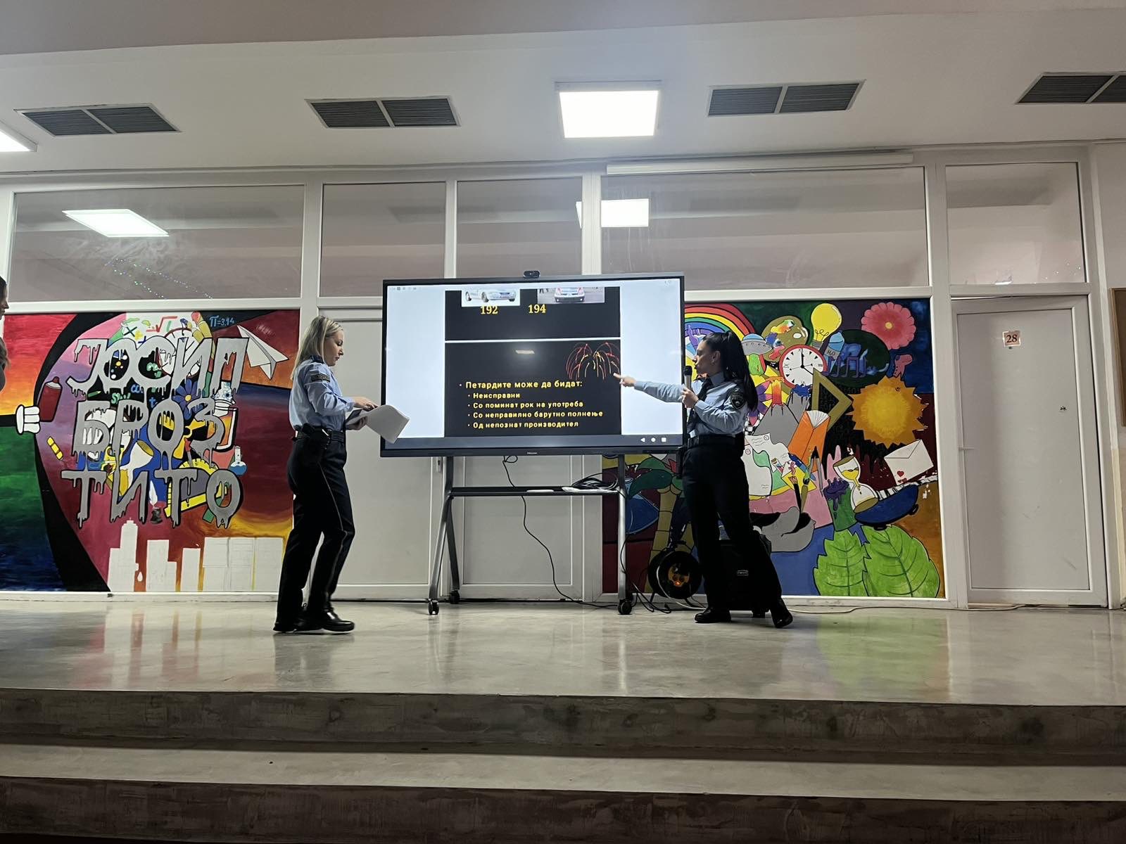 Денеска (24.12.2025), полициски службеници од Отсекот за превенција при СВР Велес, заедно со лекар од Клиниката за пластична и реконструктивна хирургија, реализираа превентивно-едукативни предавања во рамките на кампањата „Без пиротехника за побезбедни празници” за учениците од прва година од средните училишта „Јовче Тесличков“, „Коле Неделковски“, „Кочо Рацин“ и „Димитрија Чуповски“ во Велес. Исто така, полициски службеници од ОВР Кавадарци реализираа едукативни предавања и за учениците од осмо и деветто одделение од основните училишта „Тошо Велков Пепето“ и „ Димката Ангелов Габерот“ во Кавадарци. На предавањата беше укажано дека употребата на пиротехнички средства претставува опасен ризик по здравјето, особено кај децата и малолетниците, бидејќи содржат експлозив и можат да предизвикаат тешки и трајни повреди и последици по здравјето. Додека, пак, полицски службеници од ОВР Неготино во подрачното основно училиште во село Долни Дисан, неготинско, спроведоа едукативна работилница на тема „Дете, учесник во сообраќајот“, на која на учениците им беше укажано за важноста од почитувањето на сообраќајните правила и прописи, со цел подигнување на нивото на сообраќајна култура и безбедноста на децата, како најмлади учесници во сообраќајот.