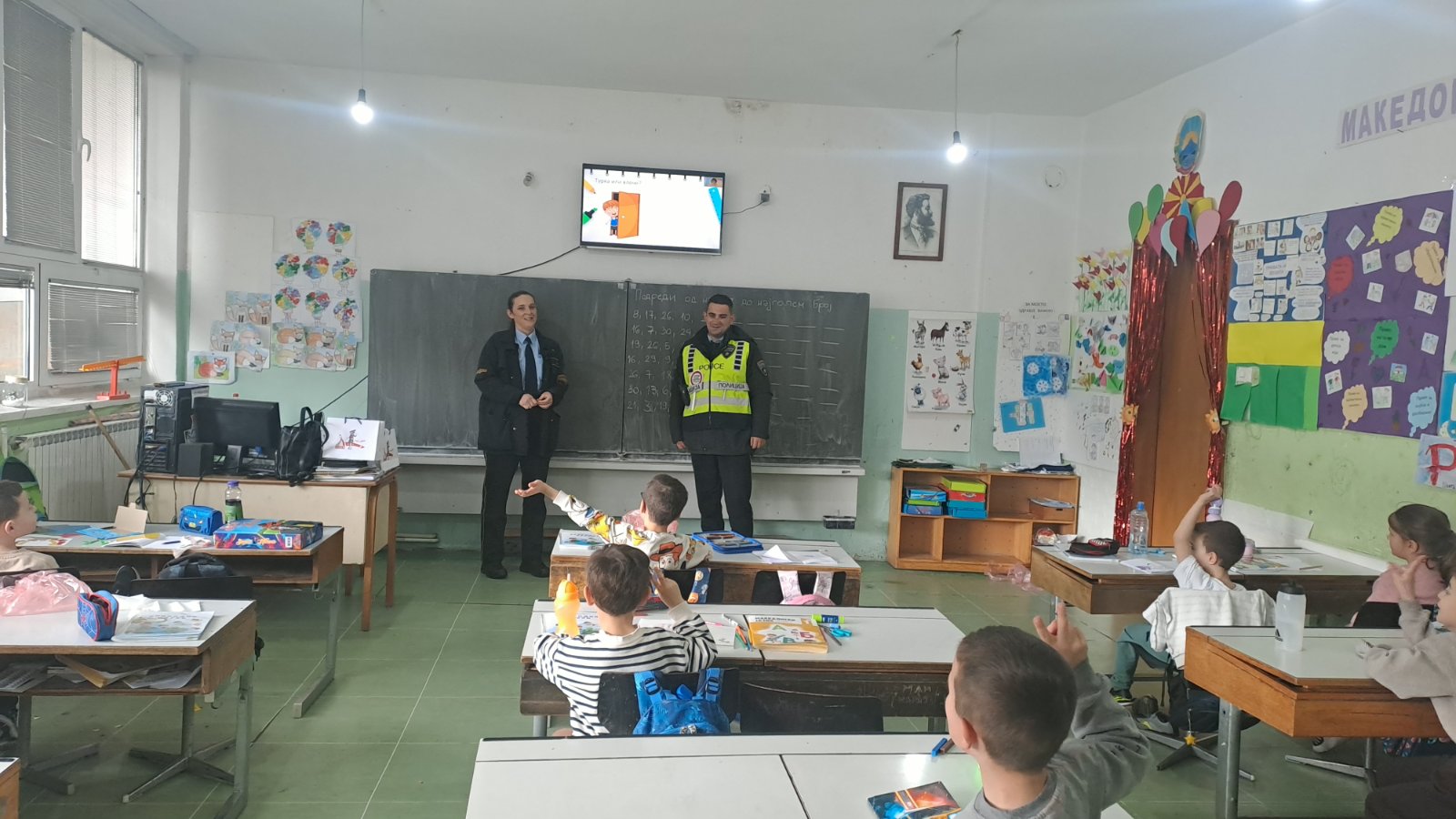 Вчера (03.04.2026) полициски службеници од ОВР Крушево реализираа превентивна активност со учениците од прво одделение, во ООУ ,,Никола Карев" во Крушево. Работилницата беше во насока на безбеден сообраќај со акцент на пешаците, а во рамките на неделата на пешаците.