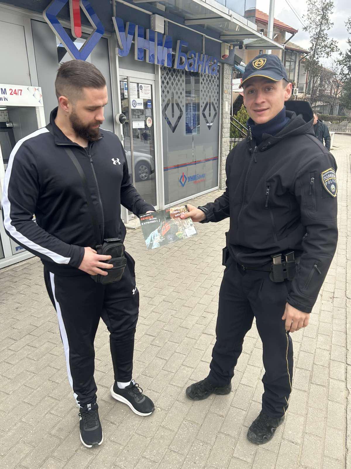 Денеска (05.03.2026), полициски службеници од Отсекот за превенција при СВР Велес реализираа превентивни активности на теми „Има помош за живот без насилство“ и „Превенција од питачење“. Преку непосредна комуникација, граѓаните беа информирани за појавите на семејно насилство, правата и мерките за заштита при постоење на некои од облиците на семејно насилство, но и за начините како да препознае психолошко насилство и насоки за тоа што можат да сторат доколку се најдат во ситуација да бидат сведоци на одреден вид насилство. Исто така, полициските службеници спроведоа и активност за превенција од питачење, со укажувања и совети за граѓаните да се воздржат од давање пари на лицата кои питачат, а секој забележан случај на питачење, особено од деца на улуца, да го пријават во надлежните институции со цел нивна заштита и целосно вклучување во општеството. Полициски службеници од ОВР Неготино пак, на Градскиот пазар и Пензионерскиот дом во Неготино и во Демир Капија, реализираа превентивни активности на тема „Заштита од измами“, со цел на граѓаните, особено на повозрасните, да им се укаже да бидат внимателни при разговори со непознати лица кои претставувајќи им се лажно им нудат разни услуги или ги доведуваат во заблуда за евентуални несреќи на блиски членови од семејството.