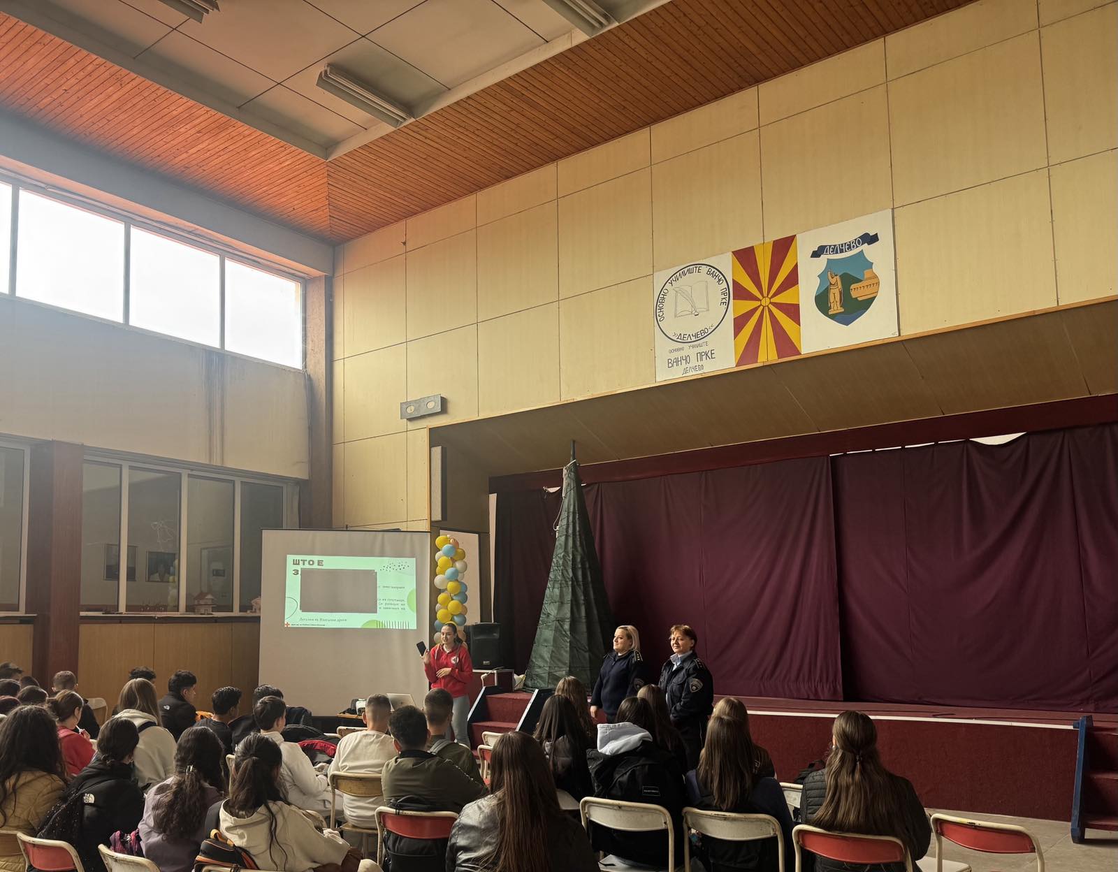Додека, пак, денеска полициски службеници од Полициската станица Делчево и Регионалниот центар за гранични работи Исток и претставник од Црвен крст Делчево во основното училиште „Ванчо Прќе“ во Делчево одржаа предавање на тема „Превенција и заштита од зависностите -никотин, алкохол и дрога“. Притоа на учениците преку презентација им беше појаснето за штетните последици од зависностите, објаснувајќи им како да се заштитат. Предавање на иста тема, како и