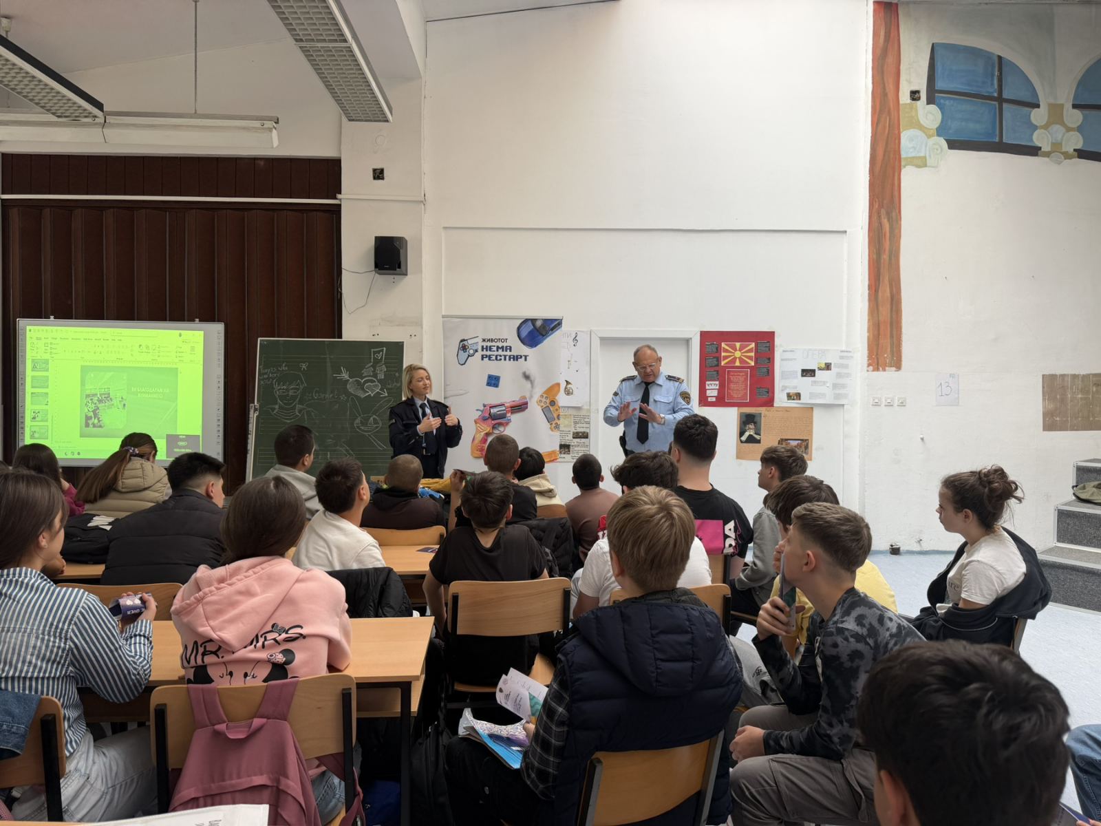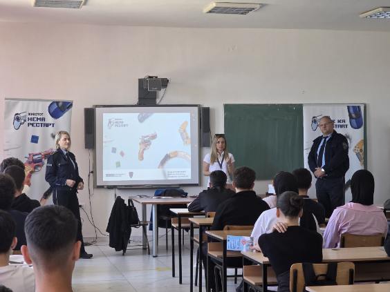 Денеска (08.04.2026) полициски службеници од Отсекот за превенција при СВР Велес, во ООУ „Блаже Конески“ и ОСУ „Гимназија Кочо Рацин“ во Велес, реализираа едукативни предавања во рамки на кампањата „Животот нема рестарт-оружјето не е игра“ која има за цел да ја подигне свеста кај младата популација за ризиците од злоупотреба на мало и лесно оружје, а се реализира со поддршка на Мисијата на ОБСЕ во Скопје. Преку презентации и интерактивна комуникација, на учениците им беа потенцирани штетните последици од злоупотребата на оружје. Кампањата има за цел да се спречи насилното однесување кај младите, проблемите да се решаваат преку дијалог и по ненасилен пат и да се зајакне соработката на институциите во нивното дејствување и остварување на целта за зголемување на безбедноста посебно кај младата популација.