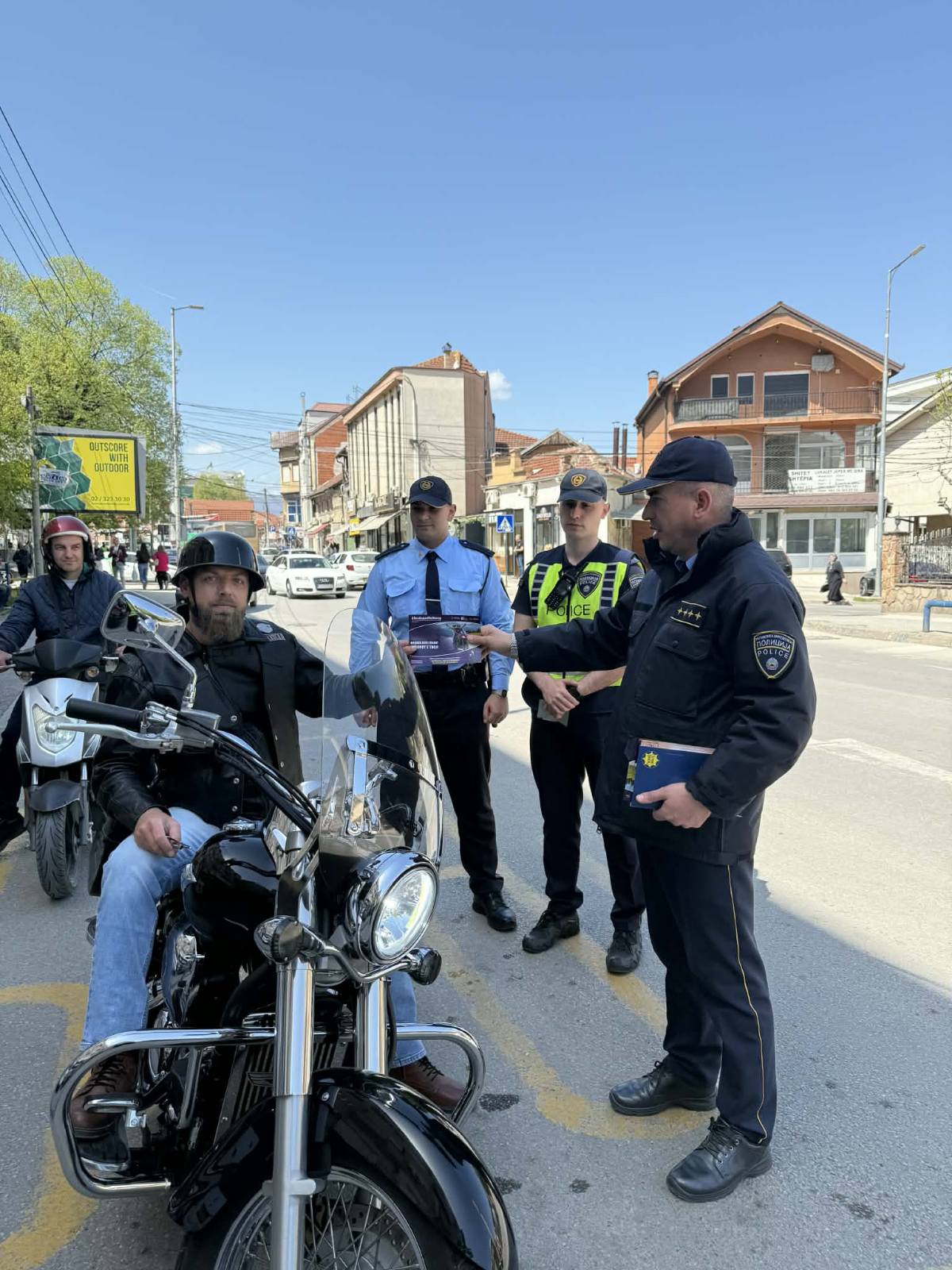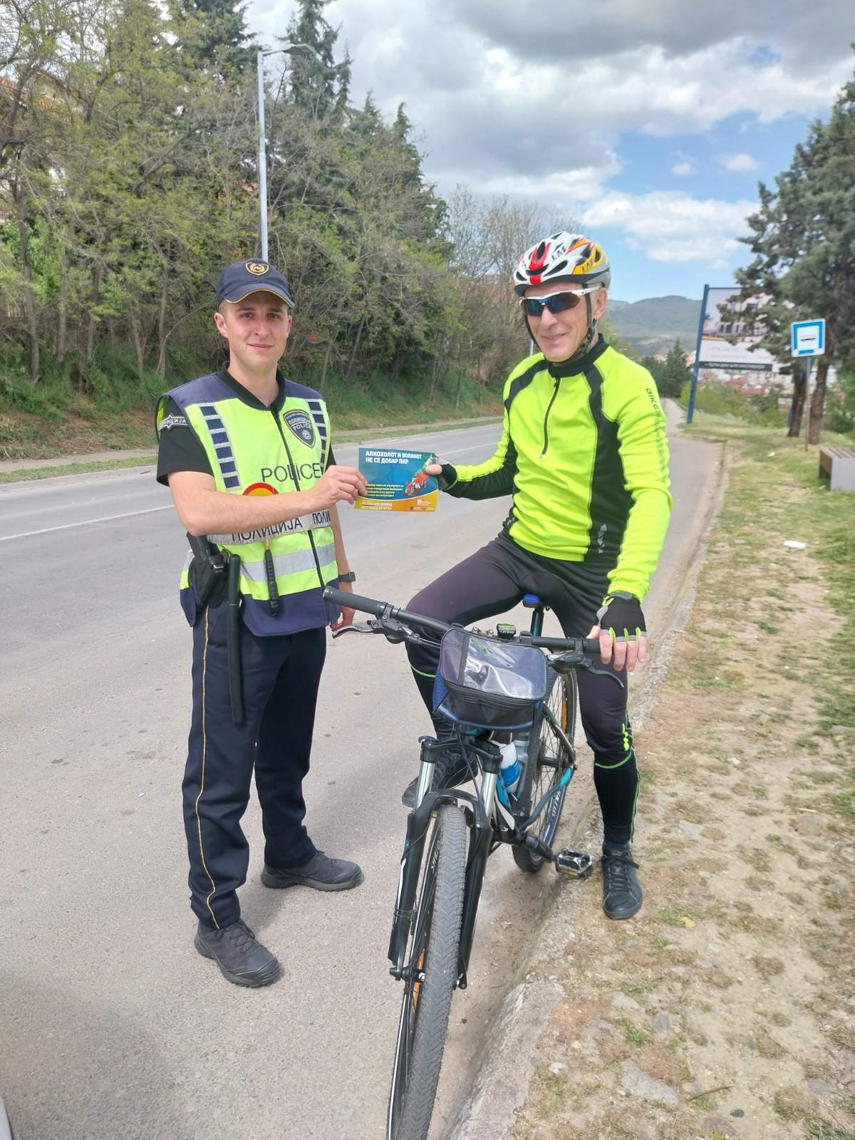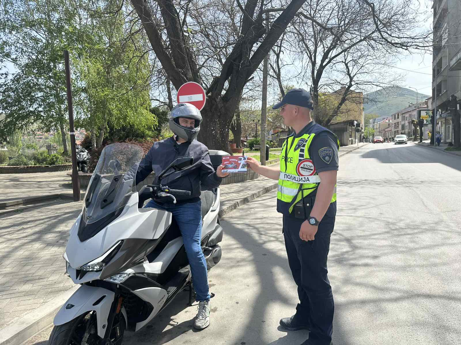 Денеска (17.04.2026) полициски службеници од Отсекот за превенција при СВР Велес, на градскиот пазар во Велес, реализираа превентивно - едукативна активност за заштита од имотни деликти. На граѓаните им беше посочено како да се заштитат од кражби. Активноста посебно беше насочена кон повозрасната популација, која е почеста мета на разни видови на имотни деликти, потенцирајќи им добро да ги заштитат своите домови, да внимаваат на своите лични предмети и да бидат посебно внимателни при комуникација со непознати лица. Денеска беа реализирани и низа сообраќајни превентивни активности. Полициски службеници од ПК Градско спроведоа превентивна активност на тема „Користи сигурносен појас“, со цел да им се укаже на возачите, но и сопатниците во возилата за користење сигурносен појас заради поголема безбедност. Полициски службеници од ПС БПС Велес, ПС БПС Куманово и ПО БПС Делчево во Велес, Куманово и Делчево реализираа активности на тема „Носи кацига“, наменета за лицата кои управуваат велосипеди, мопеди, мотоцикли и електрични тротинети, додека во општина Чашка и Кочани беа реализирани превентивни активности со цел да се информираат возачите за ризикот што го преземаат доколку седнат зад волан под дејство на алкохол. Полициски службеници од ОВР Неготино, на неколку локации реализираа превентивна активност наменета за пешаците, потенцирајќи им дека и тие имаат обврска за одговорно учество во сообраќајот, а на подрачјето на Кавадарци беше спроведена превентивна активност на тема „Паркирај совесно, паркирај одговорно“ со совети и укажување за возачите дека правилното паркирање на возилата е од исклучително значење за општата безбедност во сообраќајот. Во рамки на превентивните активности беше поделен и печатен едукативен материјал. Отсекот за превенција при СВР Куманово, пак, спроведе превентивна активност со дечиња од Клон „Синоличка“ при ЈОУДГ „Ангел Шајче“ на која дечињата беа информирани за основните сообраќајни правила, прилагодено на нивната возраст.