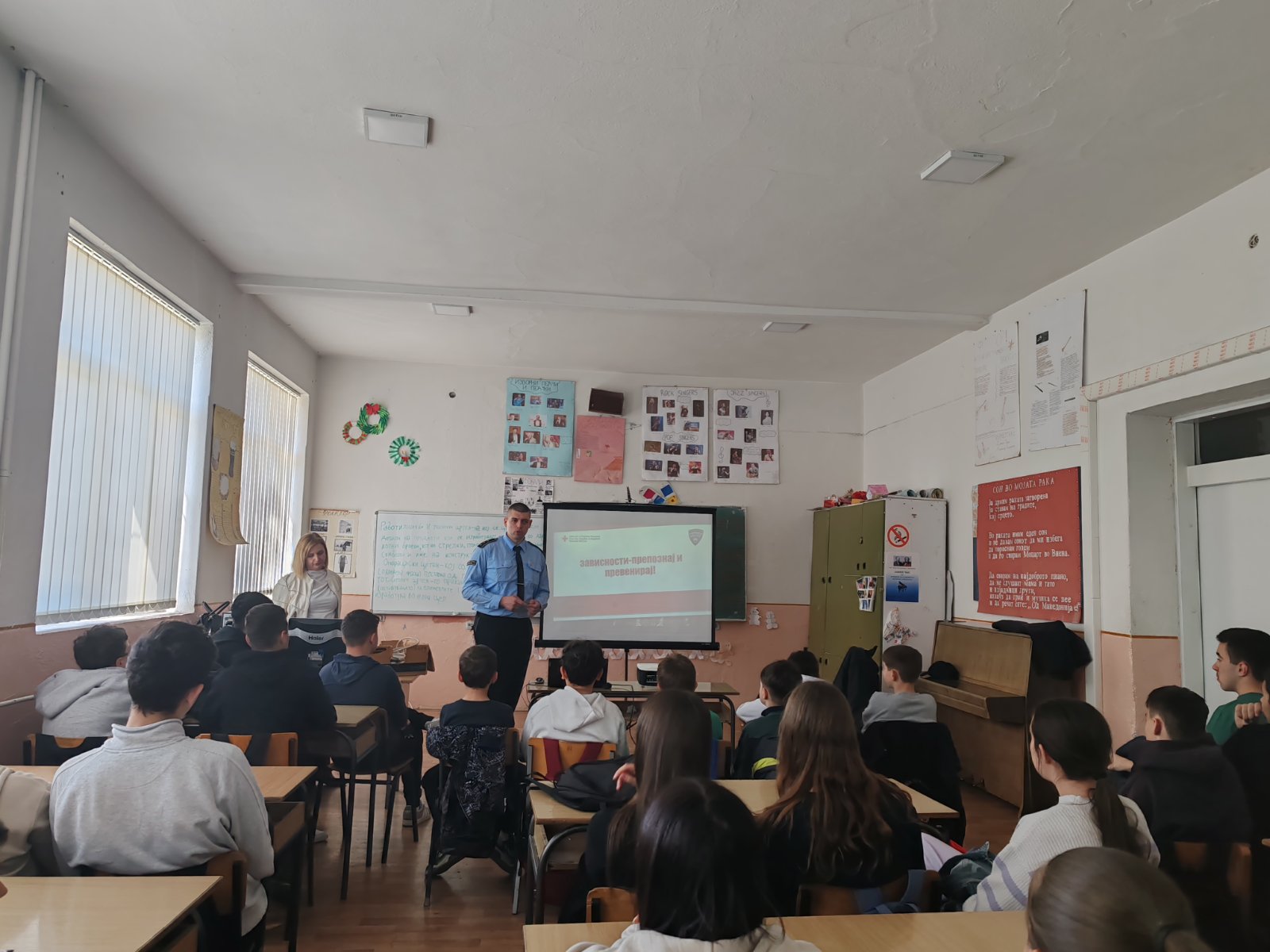 Полициски службеници од Отсекот за превенција при СВР Велес и од ОВР Неготино, пак, учествуваа на трибина во СОУ „Св. Кирил и Методиј“ во Неготино, на која ги информираа учениците за штетноста по здравјето од користењето наркотици, алкохол и цигари. Полициски службеници од ПС Кисела Вода при СВР Скопје, пак беа во посета на детската градинка „Виножито“ во с. Сопиште, при што дечињата беа запознаени со основните сообраќајни правила, прилагодено на нивната возраст.