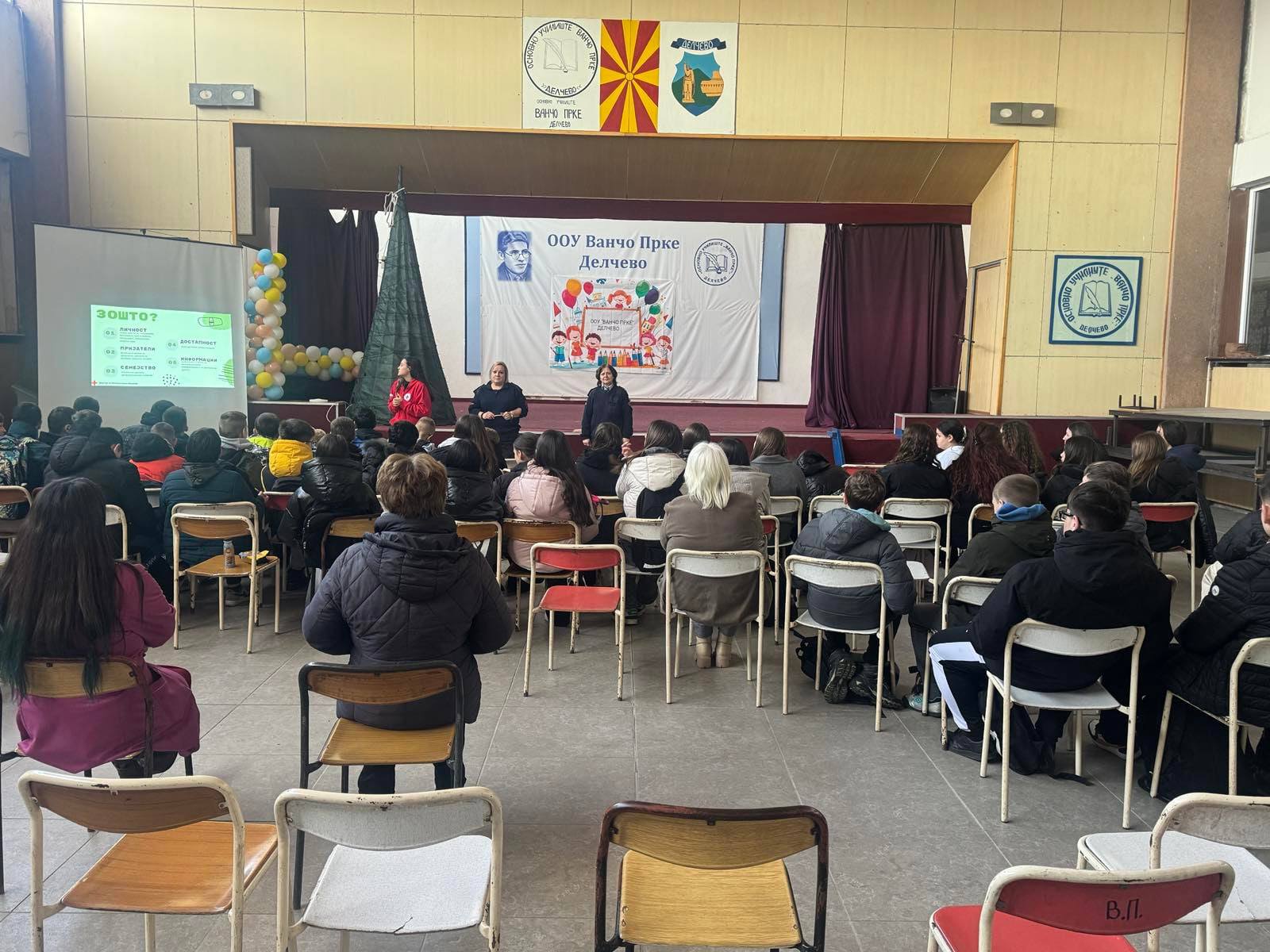 Полициски службеници од РЦГР Исток и ОВР Делчево вчера во ООУ „Ванчо Прќе“ во Делчево одржаа едукативно предавање на тема: „Превенција од злоупотреби на дрога, алкохол, пушење, обложување, интернет...“ Целта на превентивно- едукативната активност беше учениците да се запознаат со штетноста по здравјето од користењето наркотици, алкохол и цигари и негативните влијанија врз развојот на младата личност, семејството и поширокото општествено опкружување. Исто така, им беа објаснети формите и манифестацијата на зависноста, што придонесува за агресивно и асоцијално однесување, како и начините за превенција и казнените одредби предвидени за евентуално кршење на законите. На учениците им беше посочено и внимателно да ги користат социјалните мрежи, односно да не прифаќаат било какви постирани предизвици.
