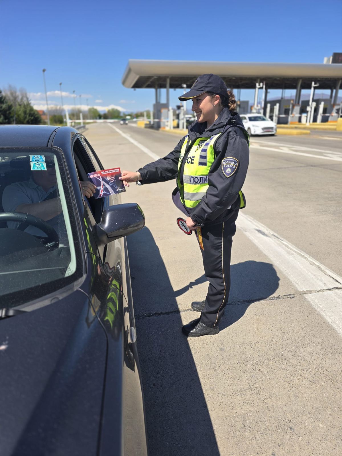 Денеска (08.04.2026) во временскиот период од 12:00 до 13:00 часот, на наплатна станица Петровец, од страна на полициски службеници од Мобилната единица за безбедност на сообраќајот на патиштата при Секторот за сообраќајни работи во соработка со Републички совет за безбедност на сообраќајот на патиштата беше реализирана превентивно-едукативна активност насочена кон зголемување на сообраќајната култура и безбедноста на возачите под мотото "Не користи мобилен телефон и други електронски уреди додека возиш" и "Стави појас".