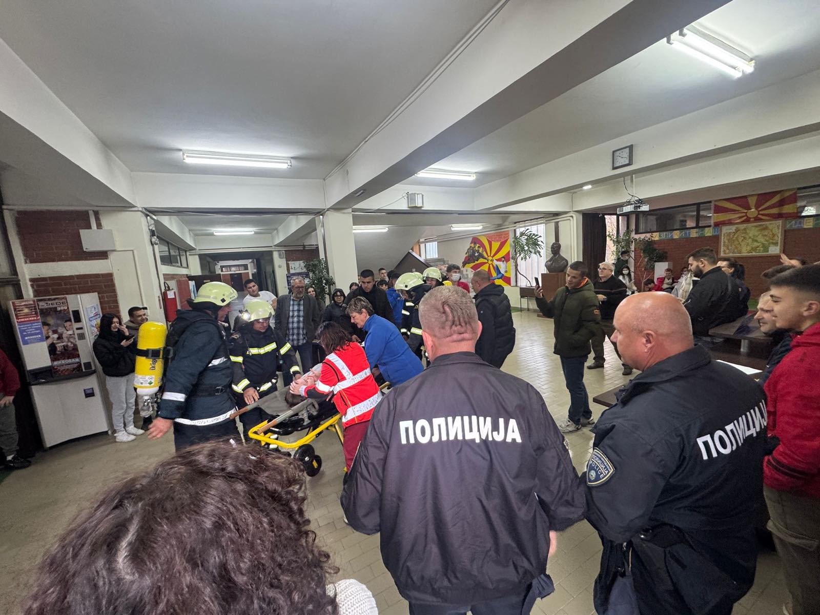 Денеска(18.11.2025), полициски службеници од ОВР Крушево во координација со Територијалната противпожарна единица Крушево, Итна медицинска помош Крушево, како и преставници од Центарот за управување со кризи и Црвениот крст реализираа симулациона вежба за справување со кризна состојба - земјотрес.