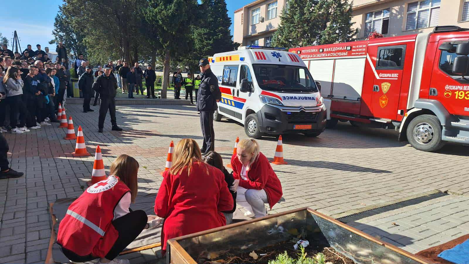 На вежбата беа презентирани мерките за заштита и спасување и начинот на постапување на службите на терен при евентуално настанат пожар. Целта е учениците да се запознаат со начините и протоколите за однесување во кризни ситуации, односно начинот на евакуација и брза интервенција при пожар, совладување на паниката и безбедно и организирано евакуирање во претпоставена ситуација.