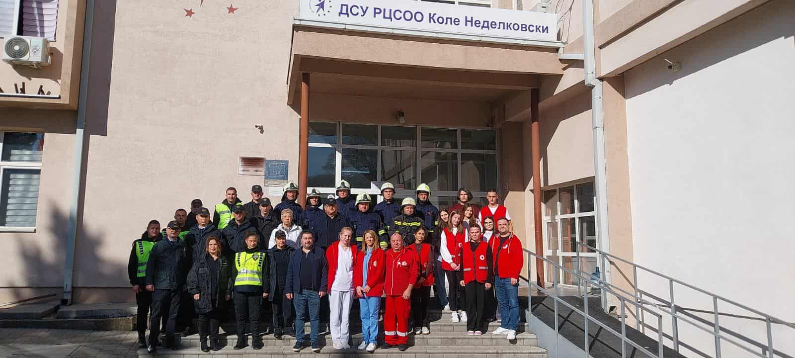 Денеска (13.11.2025) во ДСУ РЦСОО „Коле Неделковски“ во Велес, беше изведена симулациска вежба за брза евакуација и однесување во кризни ситуации, односно симулација на пожар. Полициски службеници од СВР Велес, во соработка со Територијалната противпожарна единица Велес, ОО на Црвен крст Велес, Дирекцијата за заштита и спасување и екипа на Итната медицинска помош Велес, заедно со учениците и персоналот од училиштето спроведоа вежба на тема „Начин на однесување во кризни ситуации“.