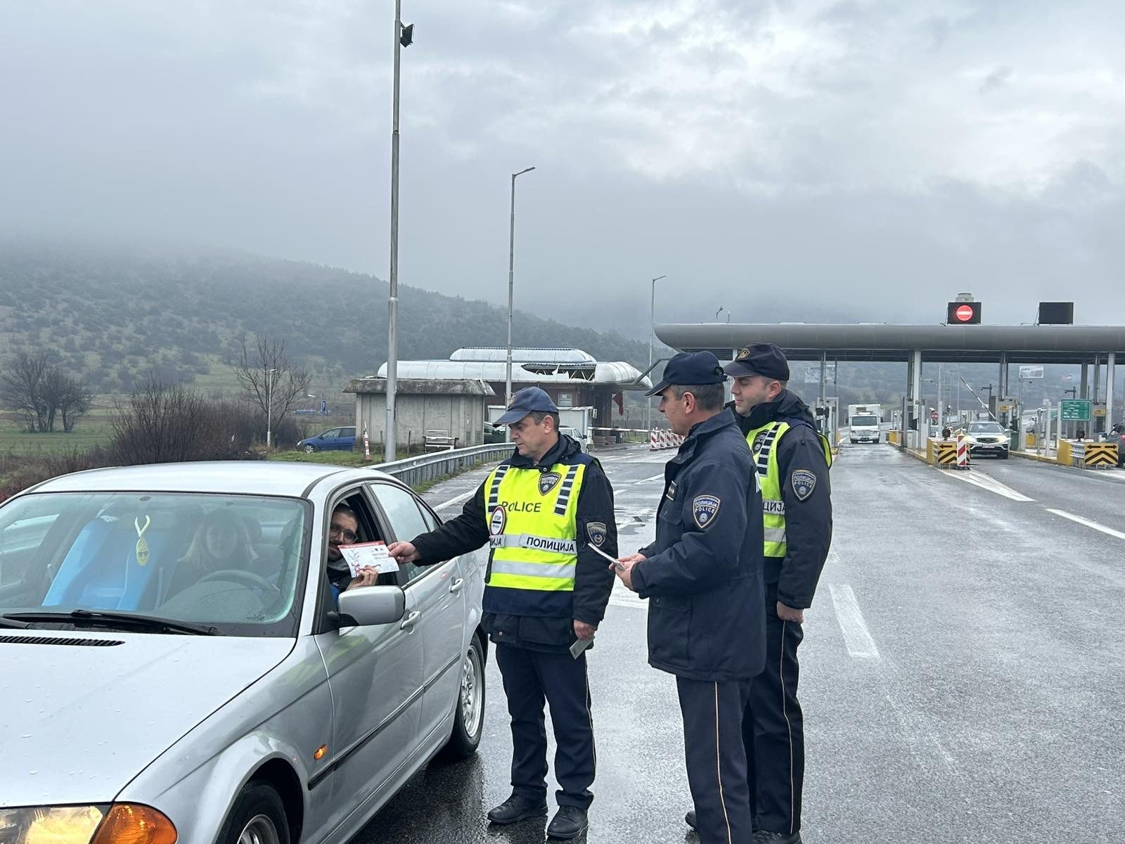 Вчера пак, полициски службеници од Отсекот за превенција при СВР Тетово во содејство со полициски службеници од ПС за БПС Тетово на наплатната станица Желино и наплатната станица Тетово, реализираа превентивна активност во координација со РСБСП и Факултетот за безбедност- Скопје со цел зголемување на свеста кај граѓаните за потребата од почитување на сообраќајните правила и прописи и со тоа зголемување на безбедноста на улиците и патиштата.