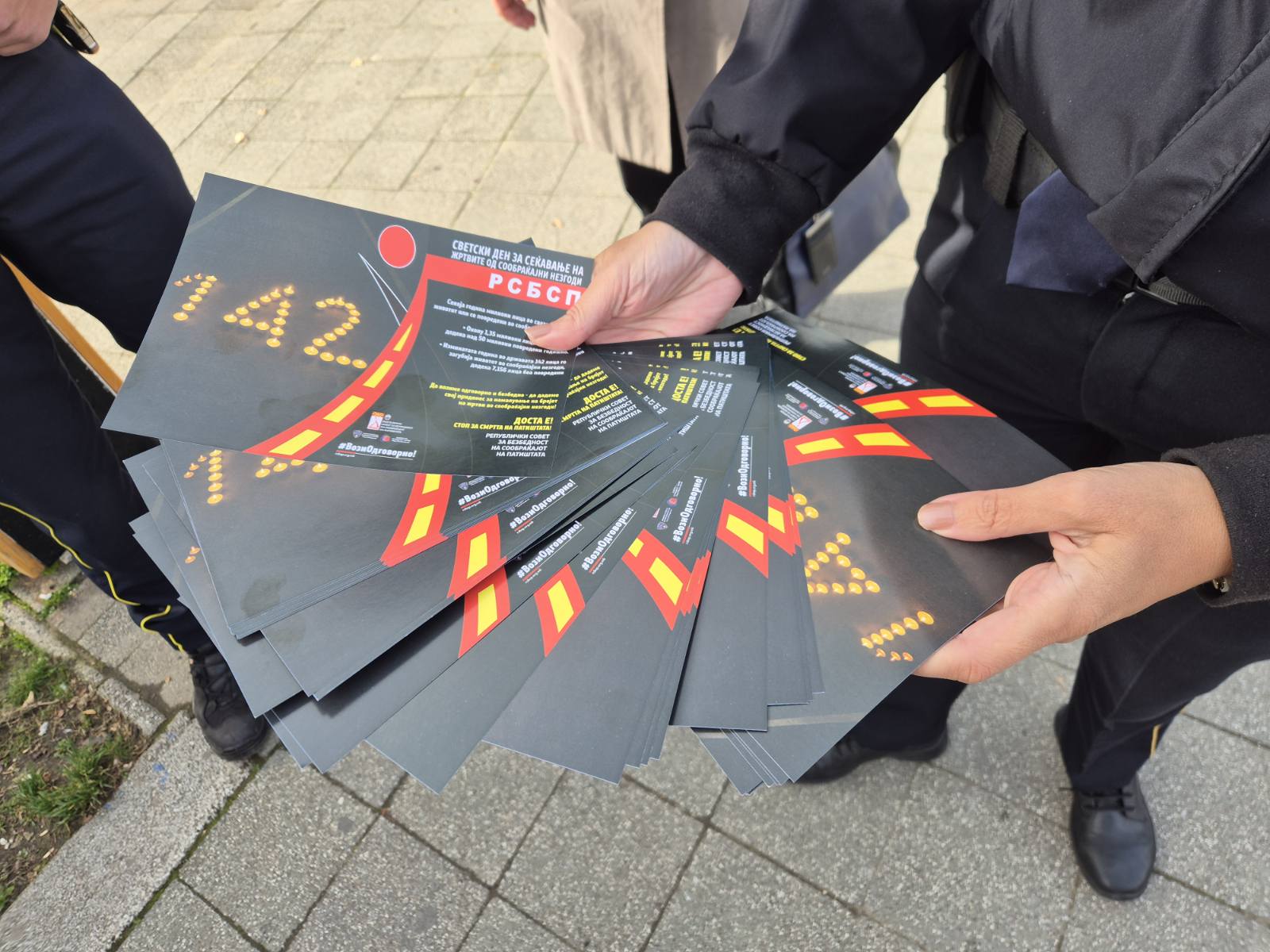 Вчера (16.11.2025) во Битола, полициски службеници од Отсекот за превенција при СВР Битола, во содејство со полициски службеници од Полициска станица за безбедност на патниот сообраќај Битола и со претставници од РСБСП, по повод Светскиот ден за сеќавање на жртвите од сообраќајни незгоди, ја започнаа кампањата под мото „Заедно со одговорно однесување во сообраќајот, да придонесеме за патишта без жртви“. За таа цел на возачите им беа делени летоци со едукативна содржина и порака - ДОСТА Е! СТОП ЗА СМРТТА НА ПАТИШТАТА!, изготвени во соработка со РСБСП и Факултетот за безбедност Скопје.